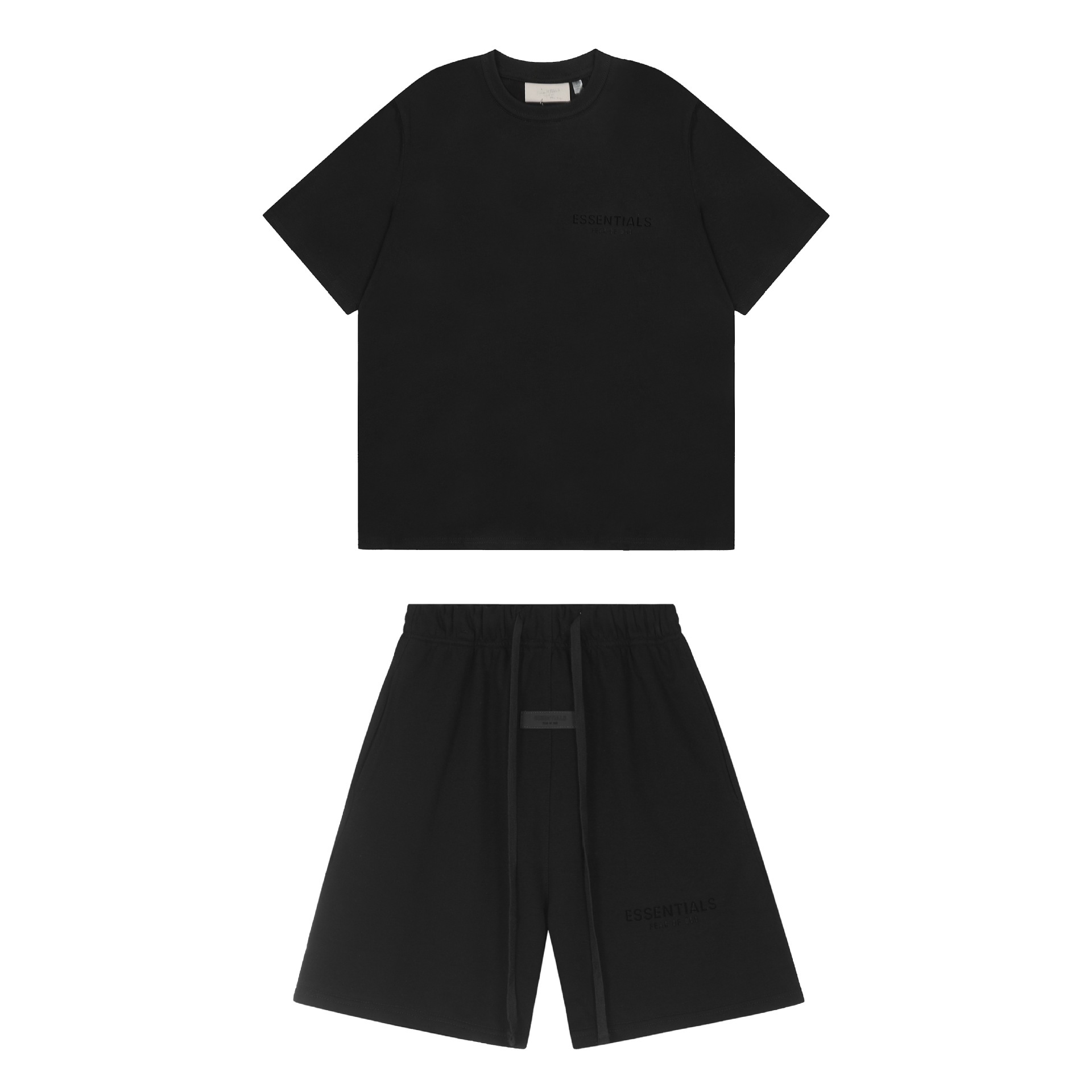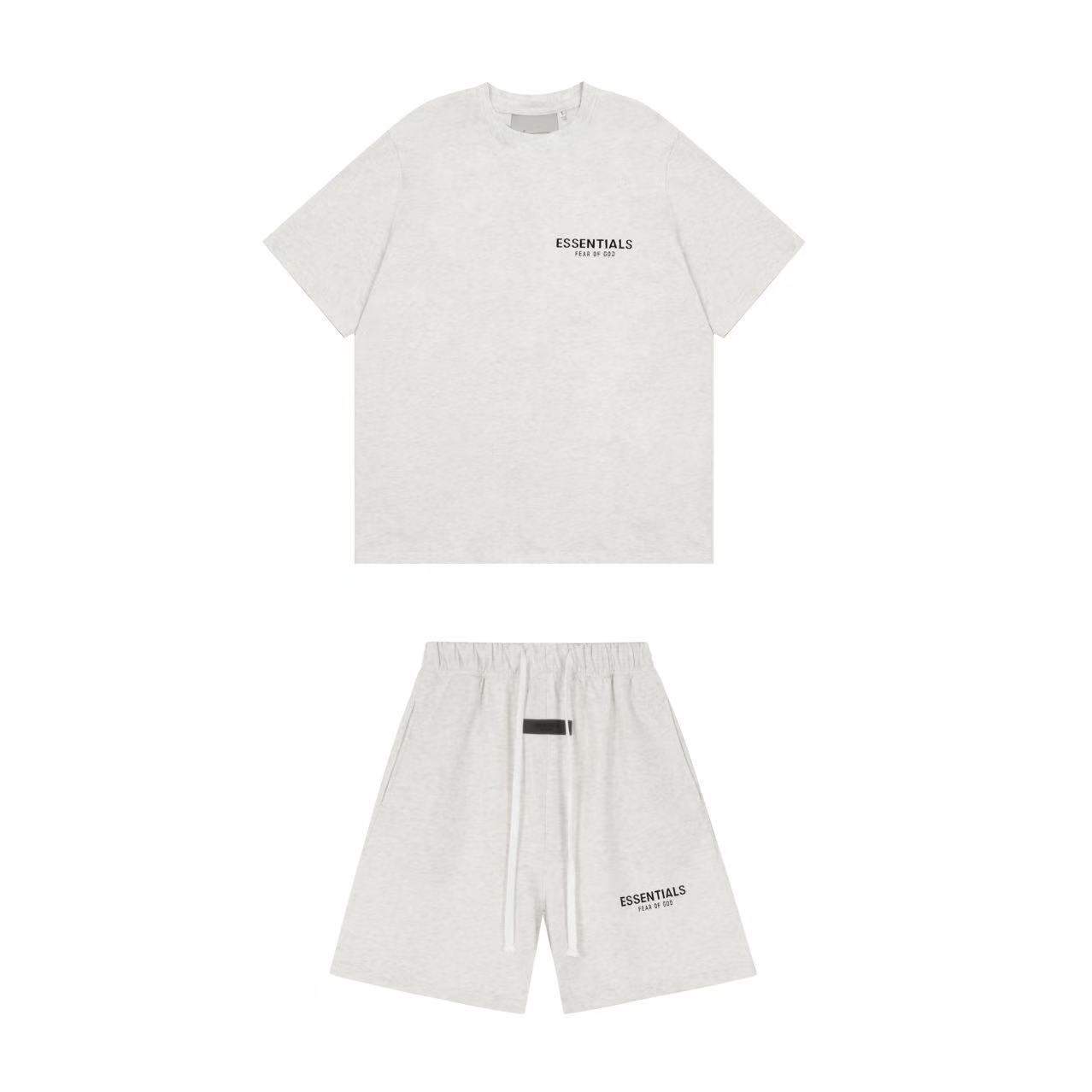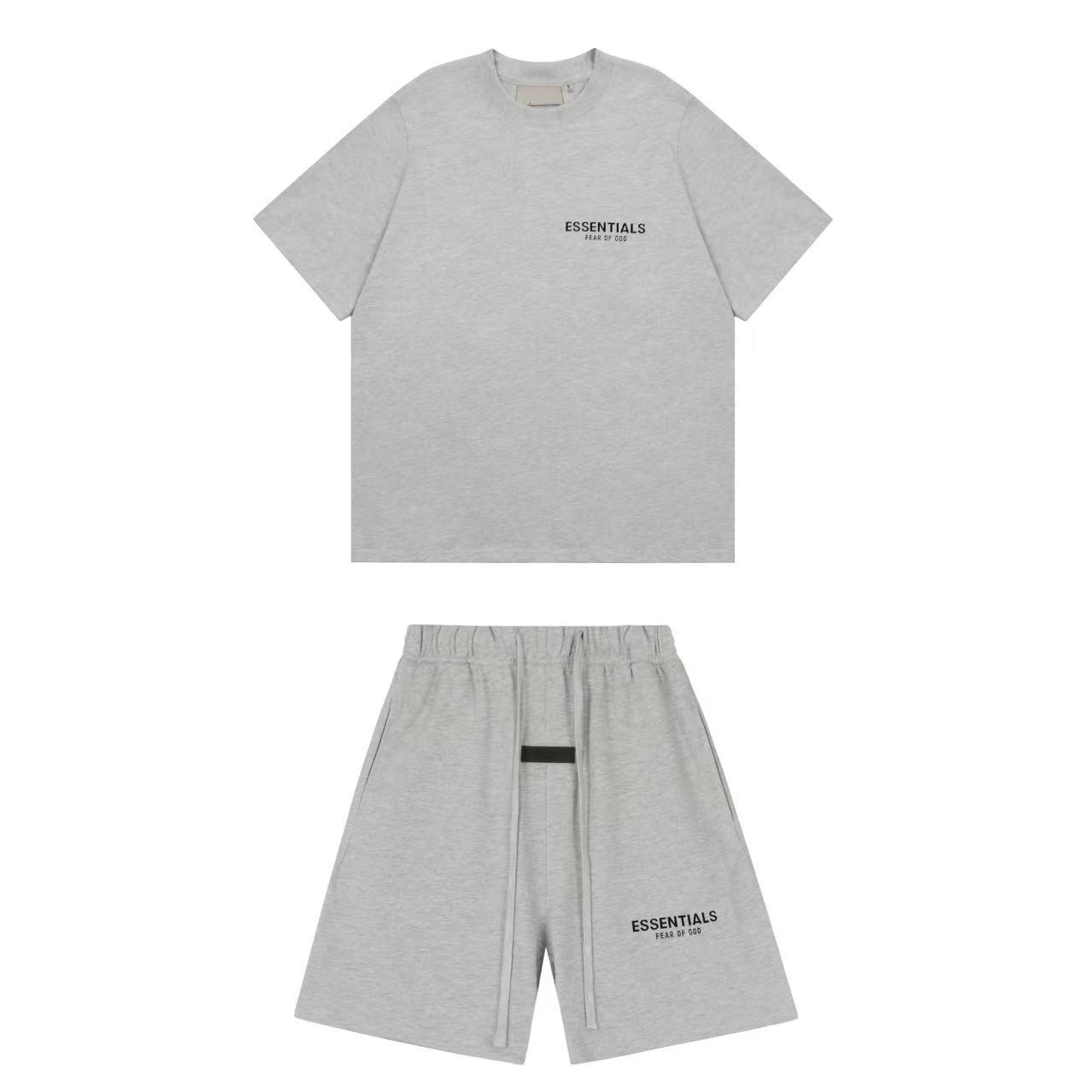 도매 ESSENTIALS 이중 라인 앞뒤 문자 프린트 여름 캐주얼 남녀 공용 순면 반팔 반바지 세트스토어 가기