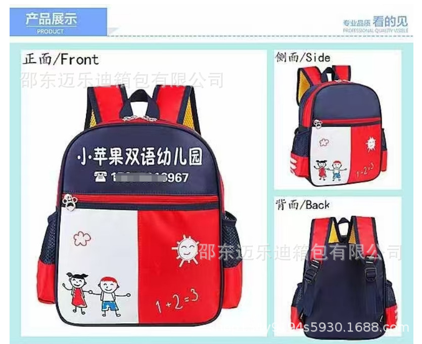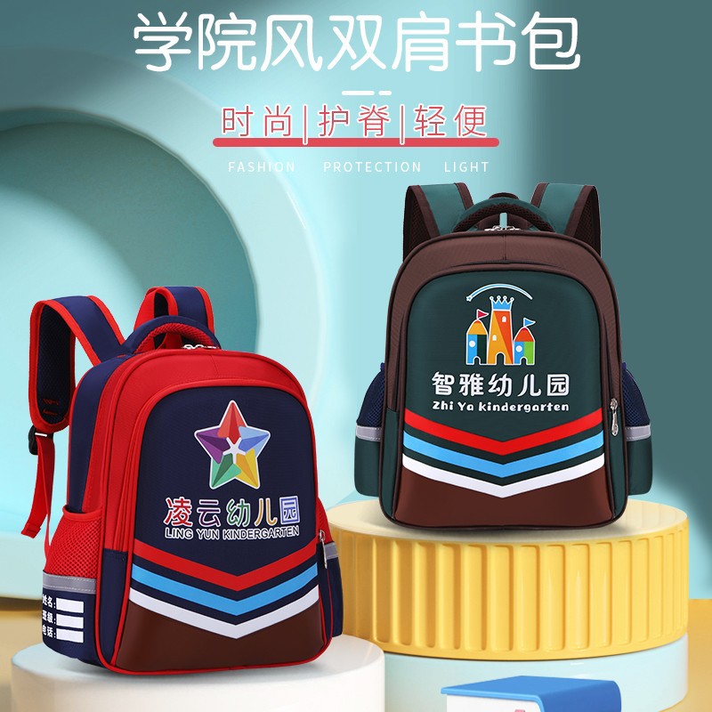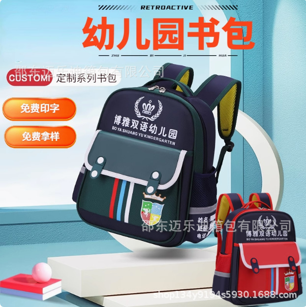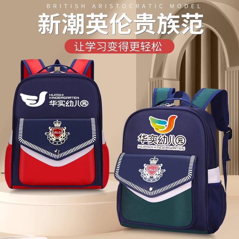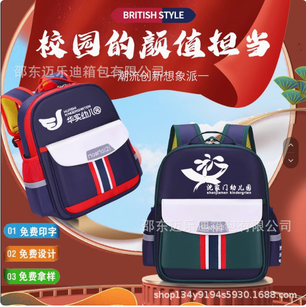 맞춤형 인쇄가 포함된 유치원 학교 가방, 맞춤형 남성 및 여성 영국 스타일 패턴, 로고가 인쇄된 어린이 만화 어깨 훈련 가방스토어 가기