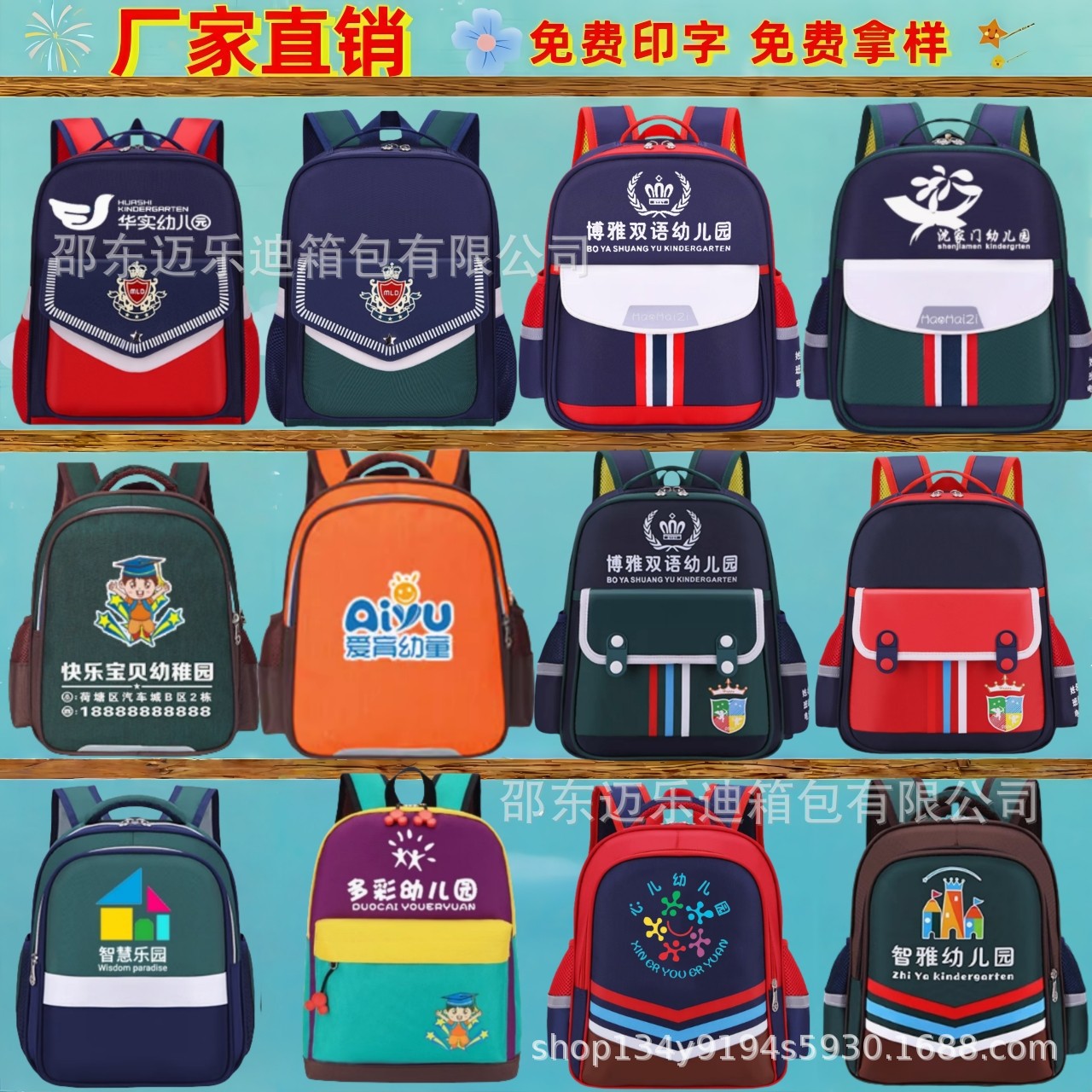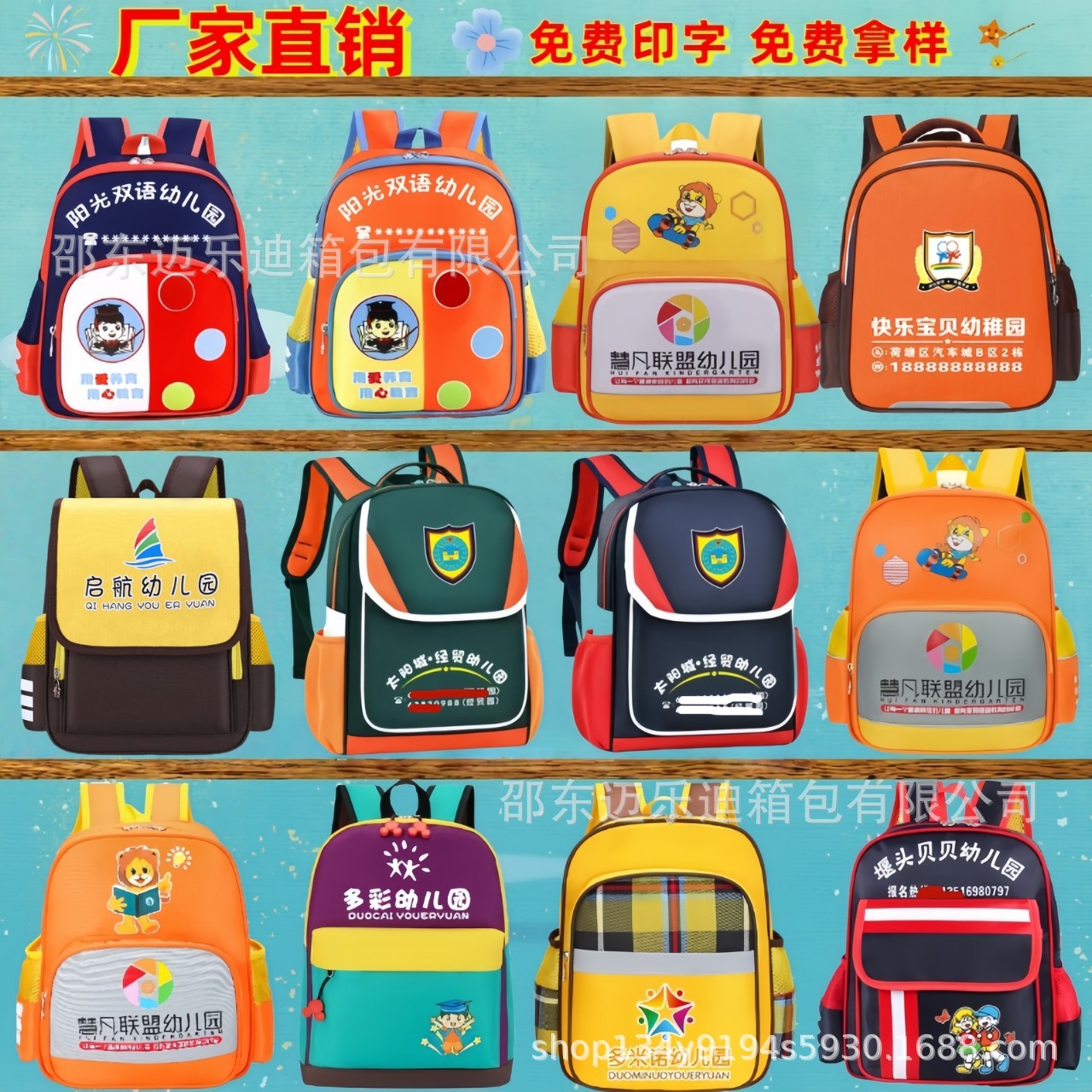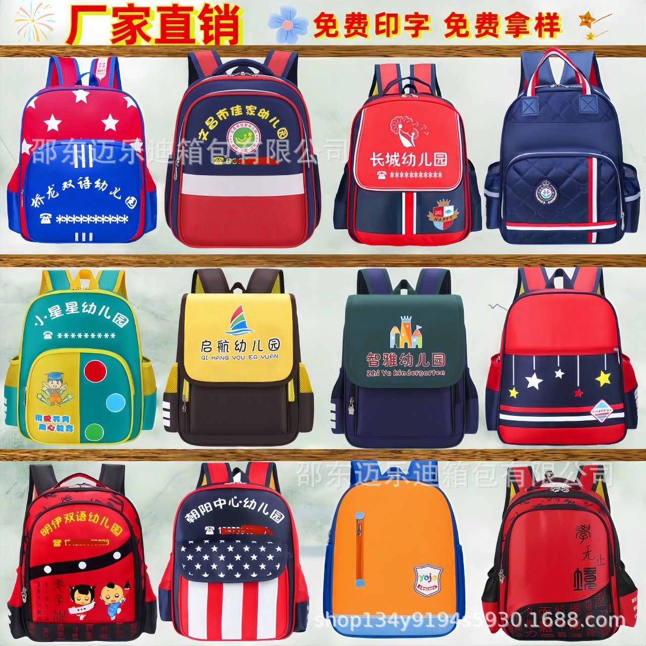 맞춤형 인쇄가 포함된 유치원 학교 가방, 맞춤형 남성 및 여성 영국 스타일 패턴, 로고가 인쇄된 어린이 만화 어깨 훈련 가방스토어 가기