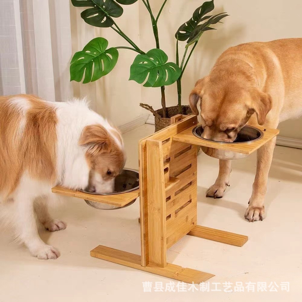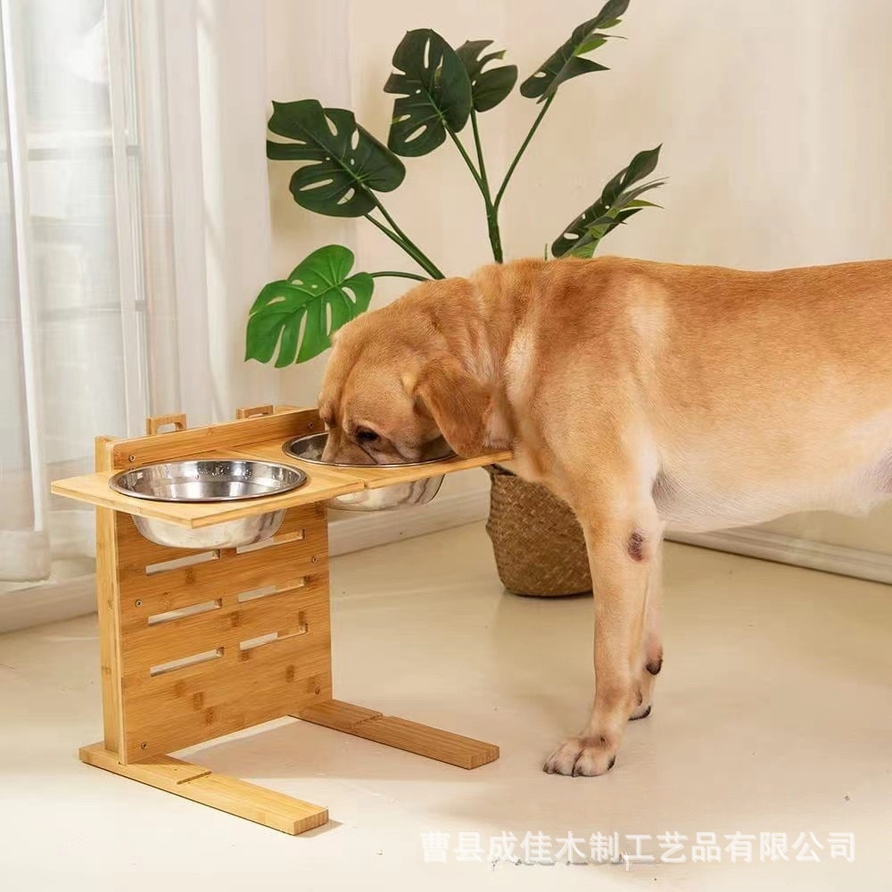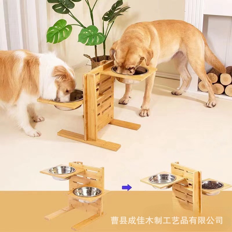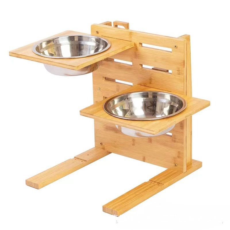 새로운 목재 애완 동물 그릇 랙은 대나무 단단한 나무 개 애완 동물 피더 높낮이 계층화 된 고양이와 개 그릇 식품 랙을 들어 올릴 수 있습니다스토어 가기