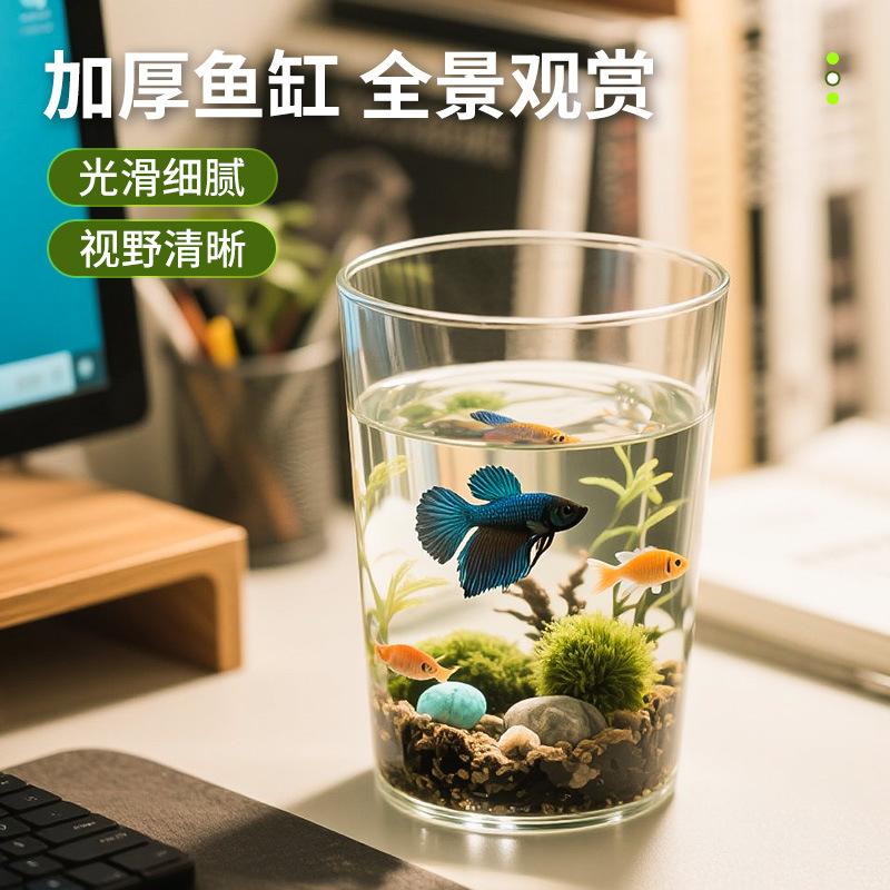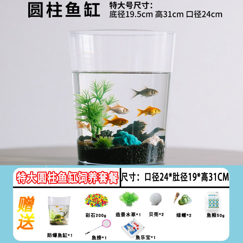 가정용 직선 AS 수족관 수조 조경 작은 원형 사무실 원통형 거실 크리 에이 티브 금붕어 탱크 투명