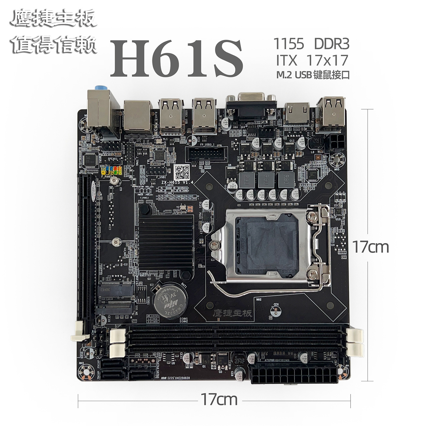 全新鹰捷H61S主板 1155 DDR3 17*17 ITX H61主板