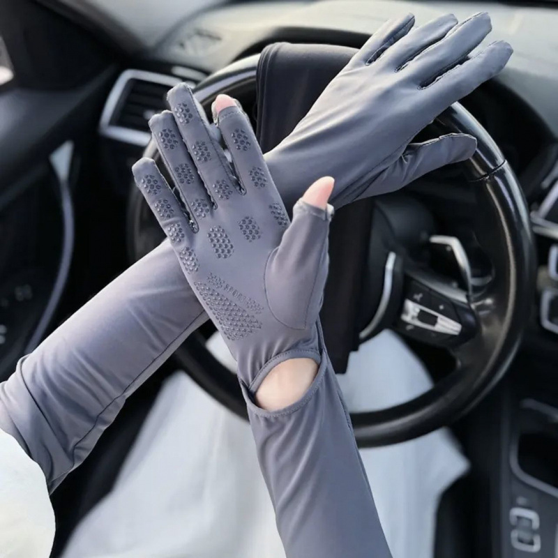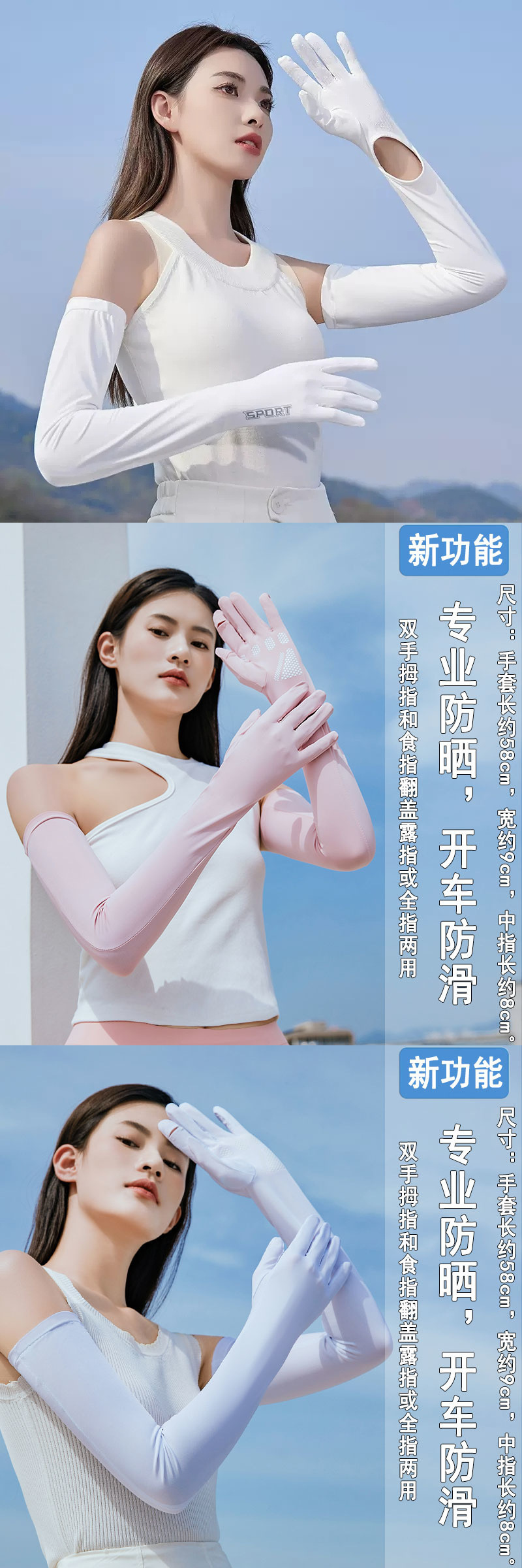 여성용 자외선 차단 장갑, 자외선 차단, 전기 자전거 타기, 여름용 긴 아이스 슬리브, 통기성이 좋고 얇은 운전용 아이스 실크 슬리브