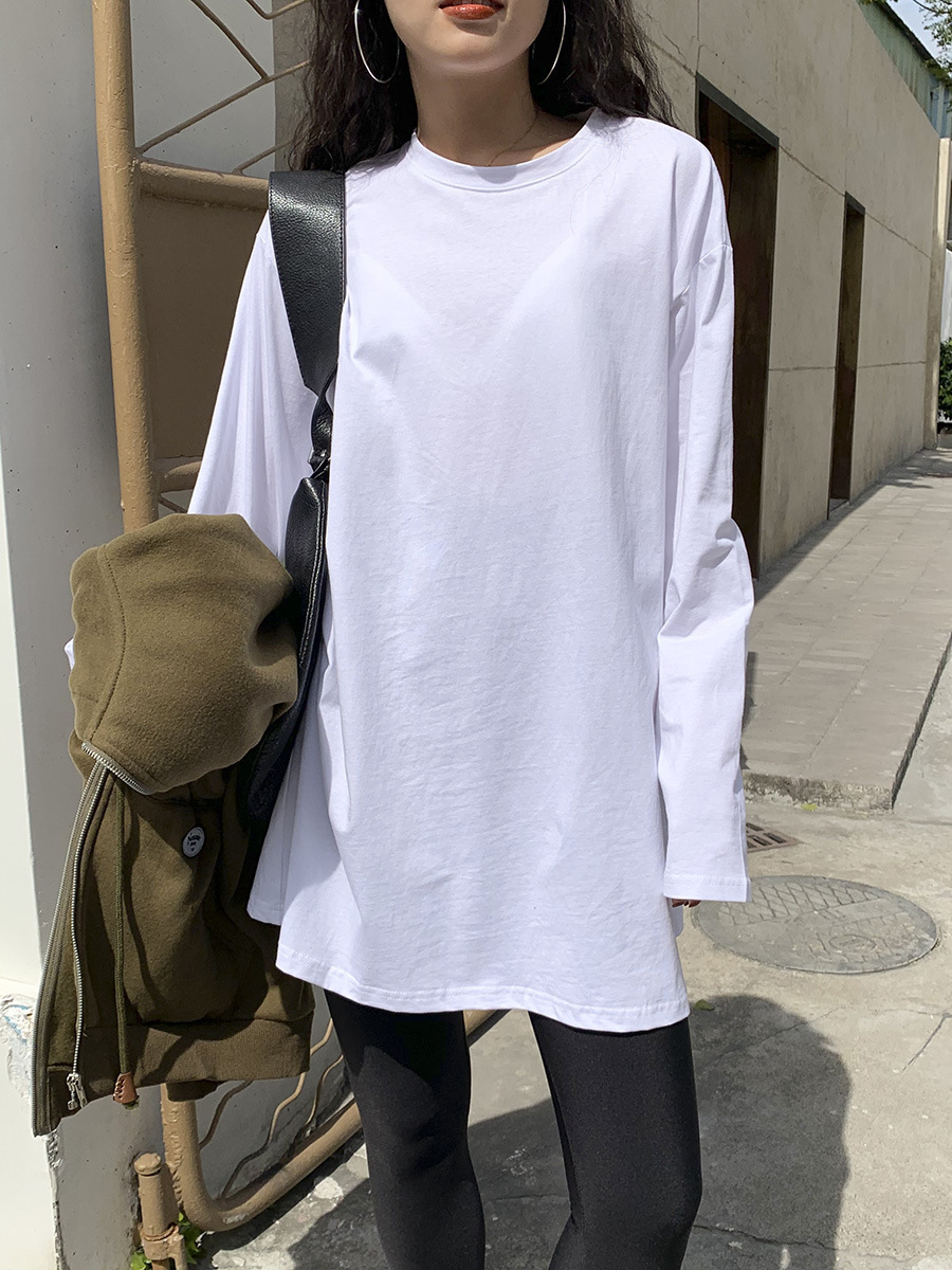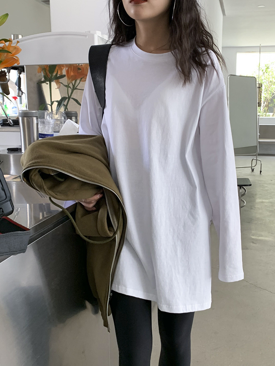 2025 신상 가을 여성복 한국식 컬러 슬릿 긴팔 티셔츠 여성 상의 하의 셔츠 트렌디하고 스타일리시한 셔츠스토어 가기