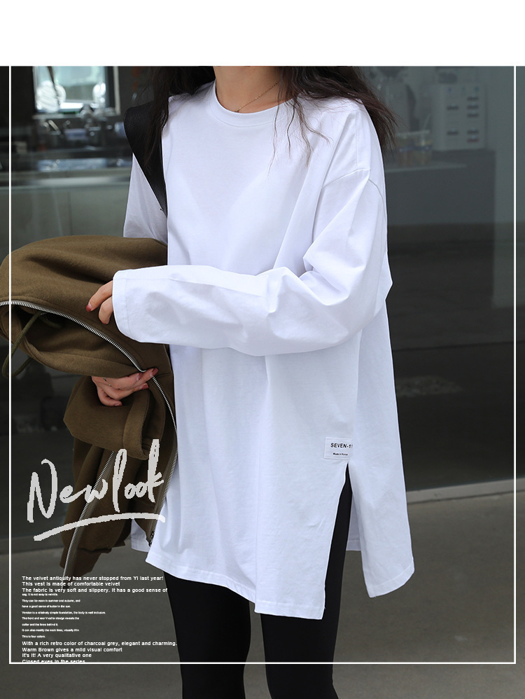 2023年秋装新款女装韩版色开叉长袖T恤女上衣打底衫潮洋气小衫