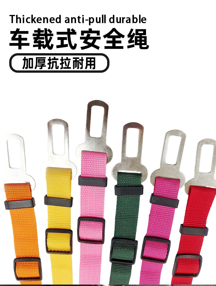 【产品使用】:一头栓在宝贝的项圈上,一头叉在车车安全带的插口上.不用担心大狗小狗的区别,都可以用哦.