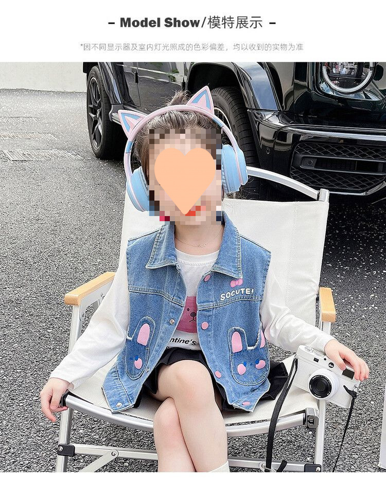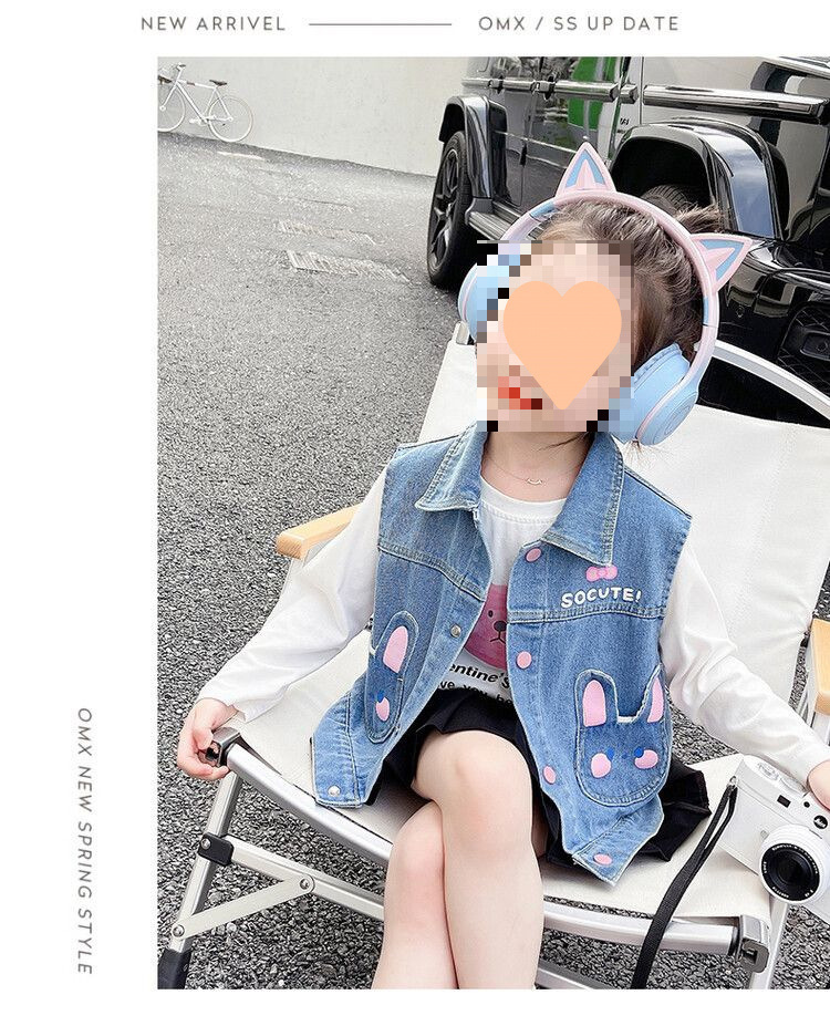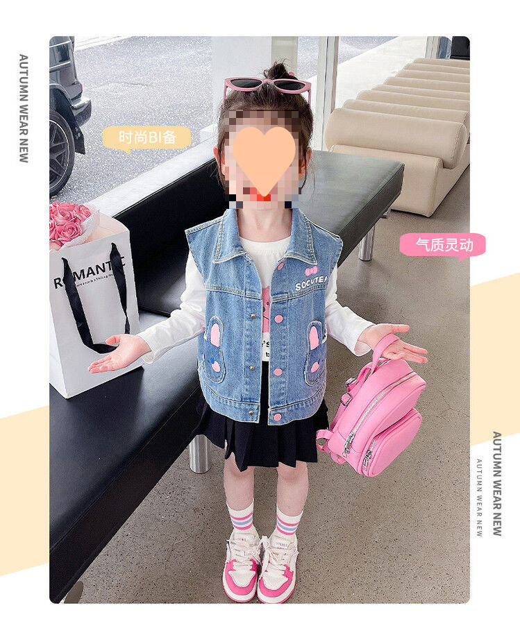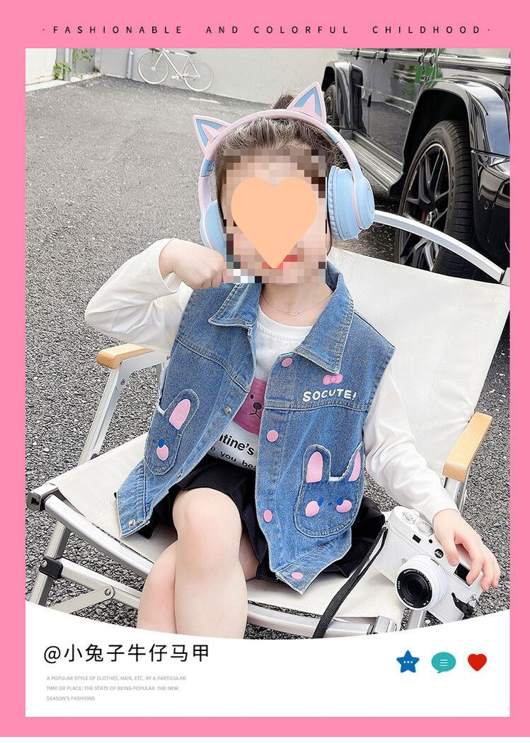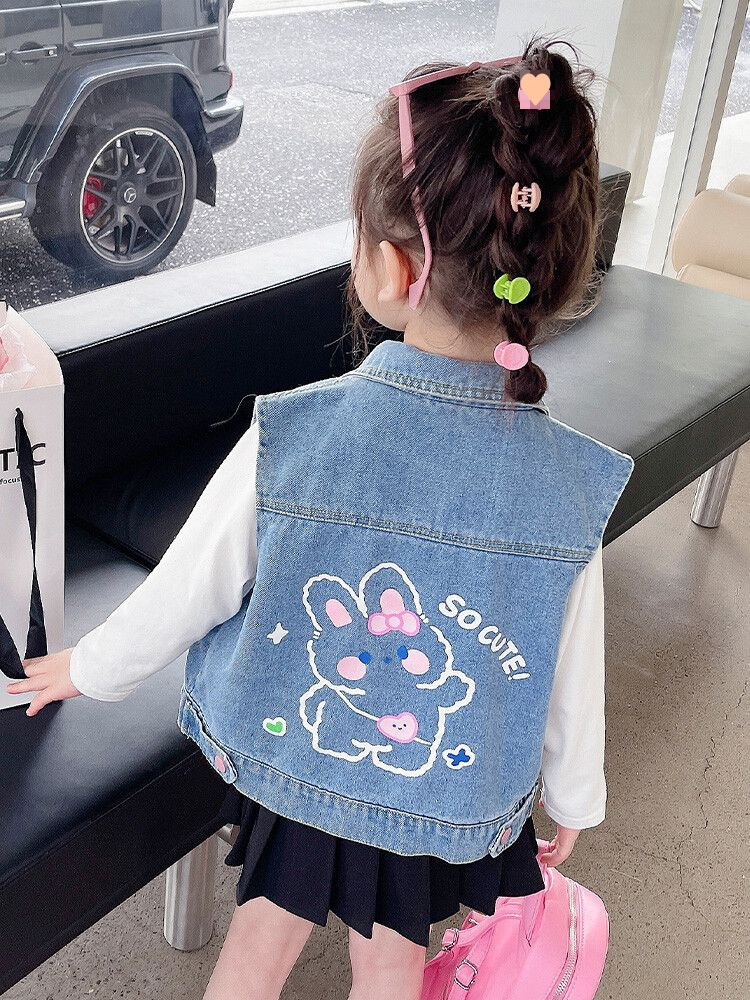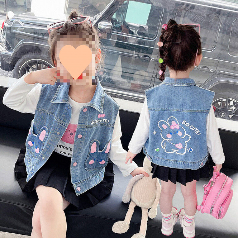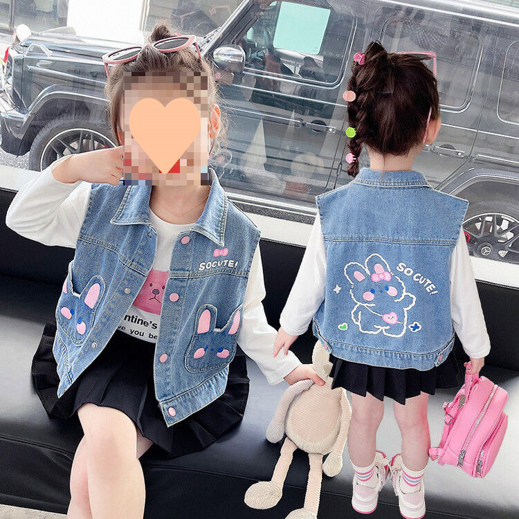 여자 데님 조끼 봄, 가을 2025 새로운 어린이 스타일 가을 코트 아기 유행 겉옷 조끼 가을 옷스토어 가기