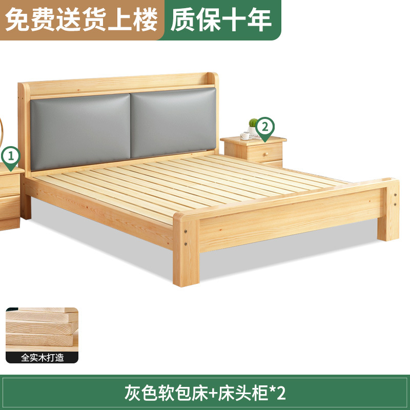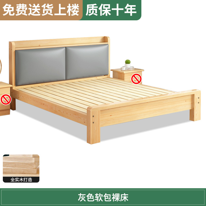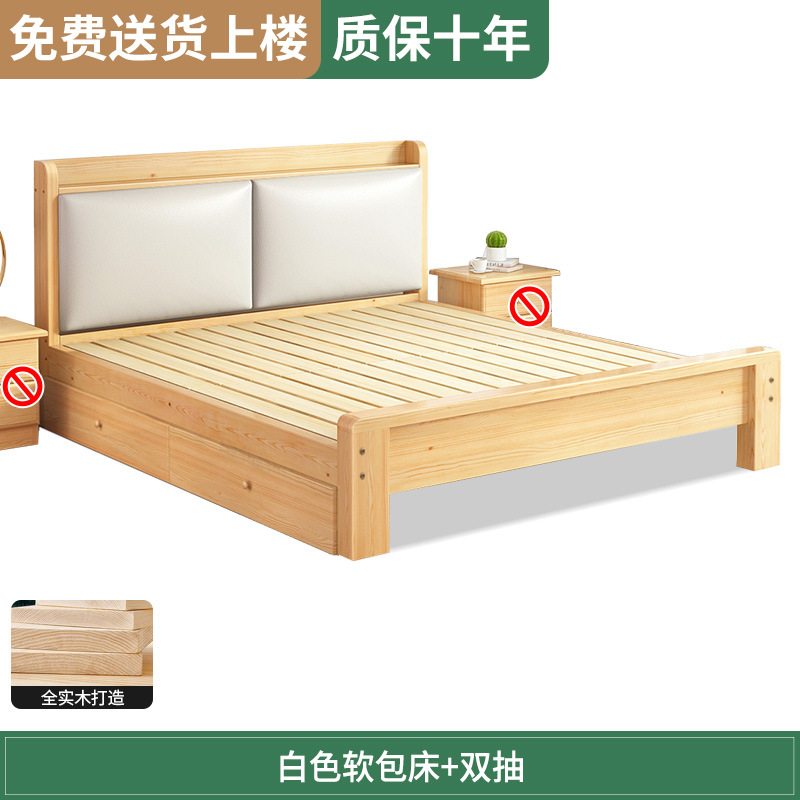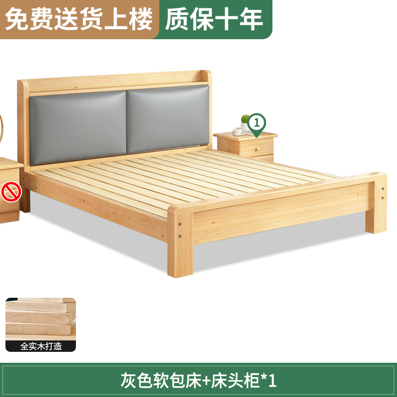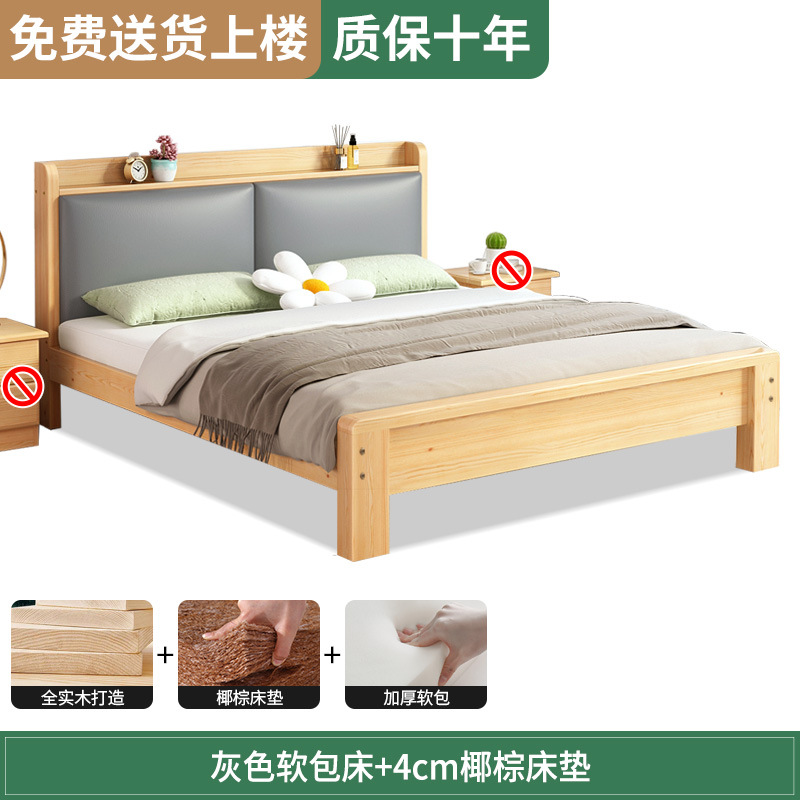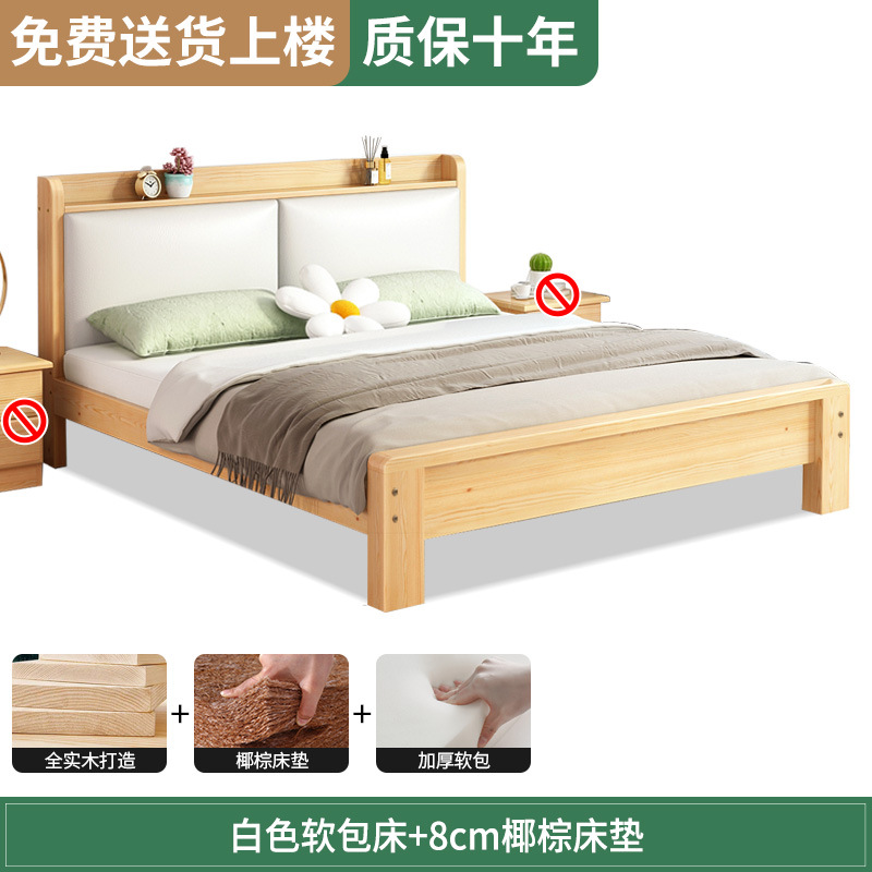원목 침대 1.5m 침대 더블 침대 마스터 침실 모던 심플 풀 원목 임대 가정용 소프트 팩 1.2 싱글 침대 프레임스토어 가기