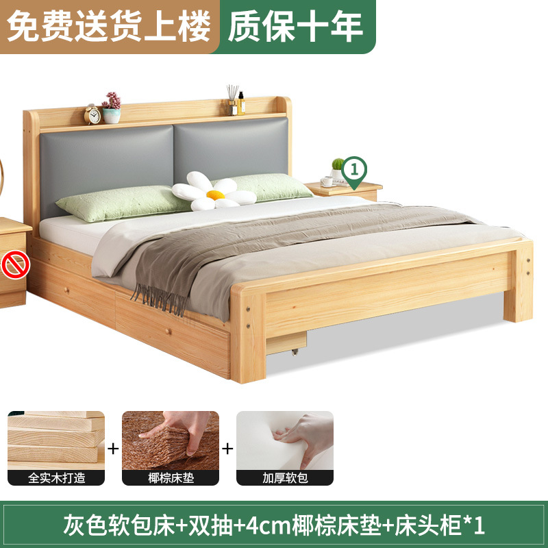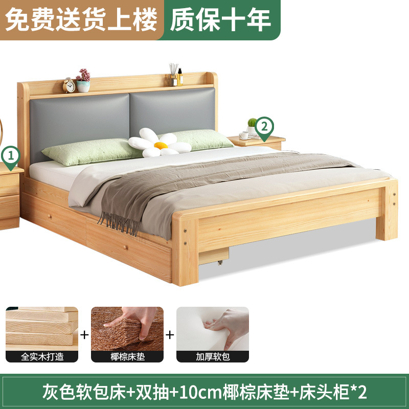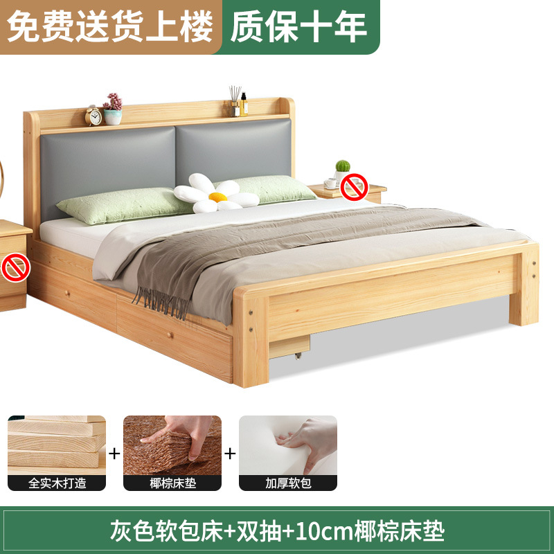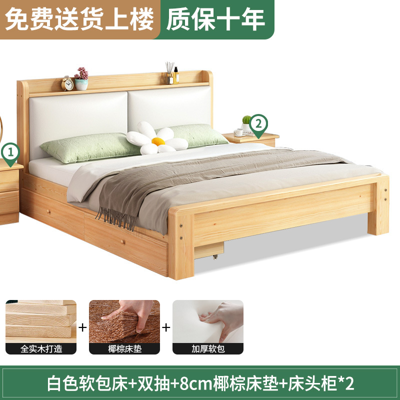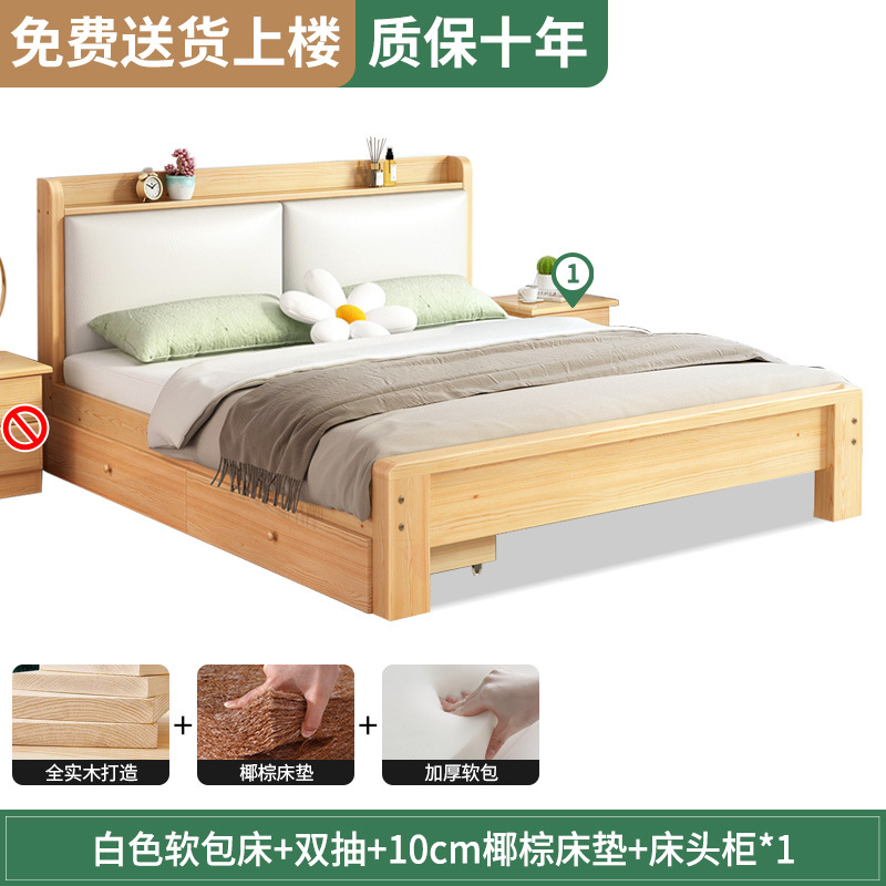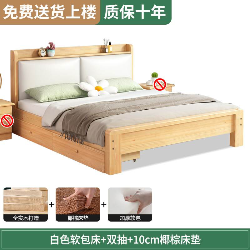 원목 침대 1.5m 침대 더블 침대 마스터 침실 모던 심플 풀 원목 임대 가정용 소프트 팩 1.2 싱글 침대 프레임스토어 가기