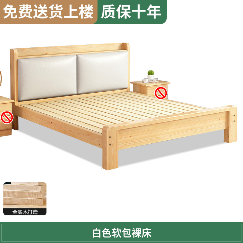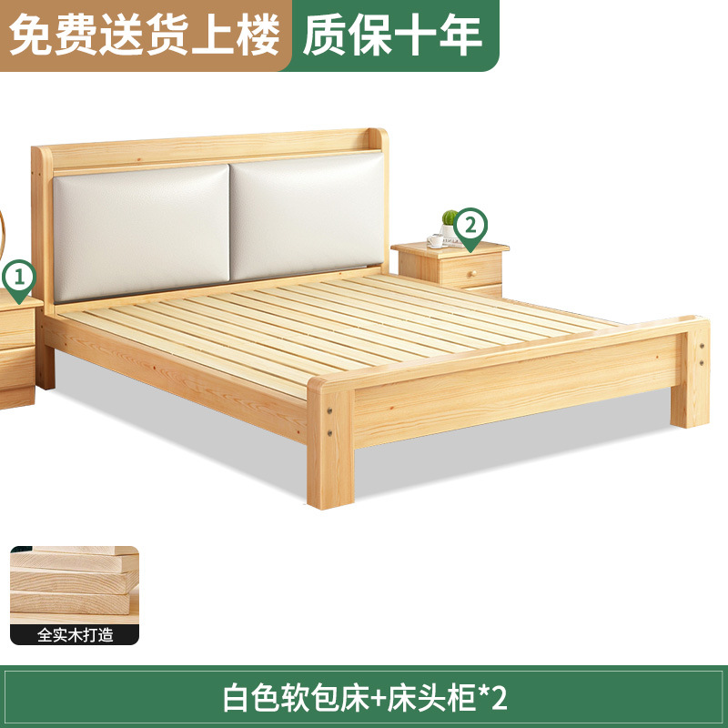 원목 침대 1.5m 침대 더블 침대 마스터 침실 모던 심플 풀 원목 임대 가정용 소프트 팩 1.2 싱글 침대 프레임