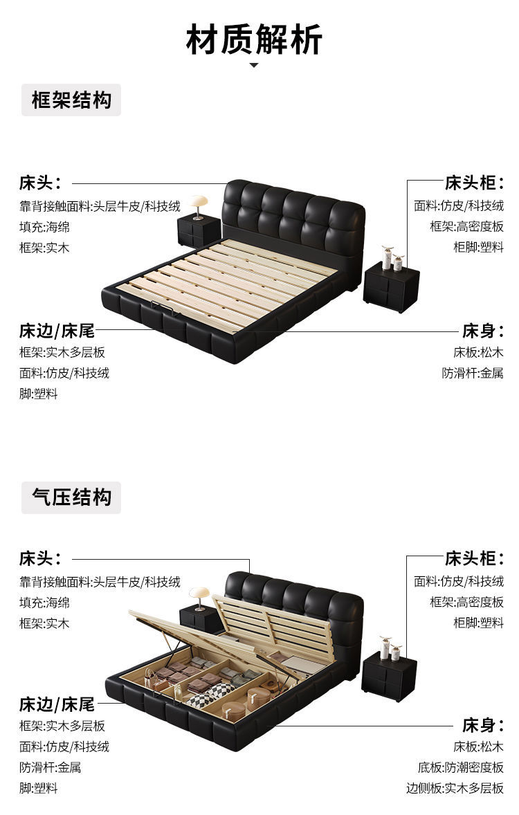 • 가죽 침대 + 피부 친화적인 통기성 니트 매트리스