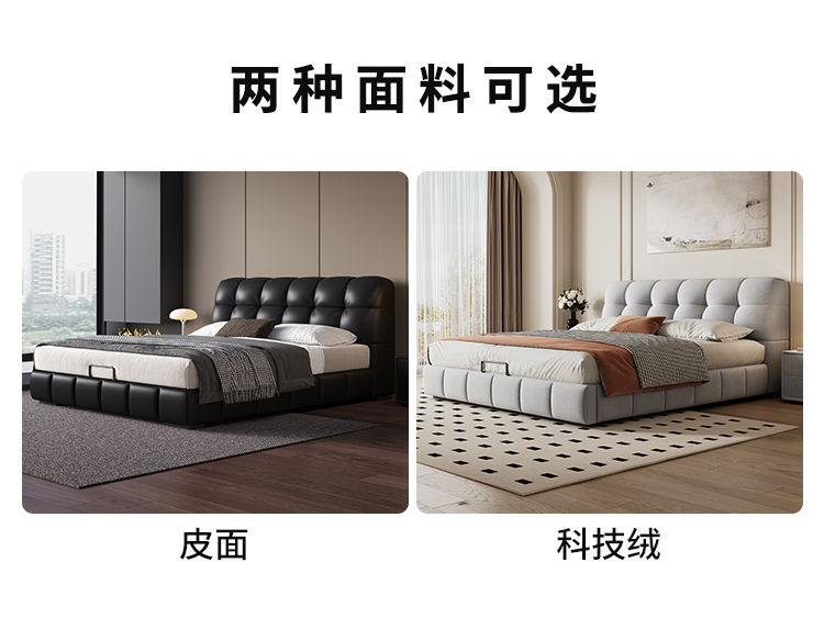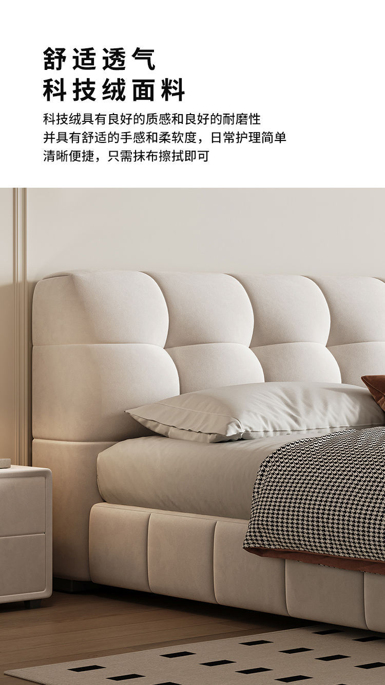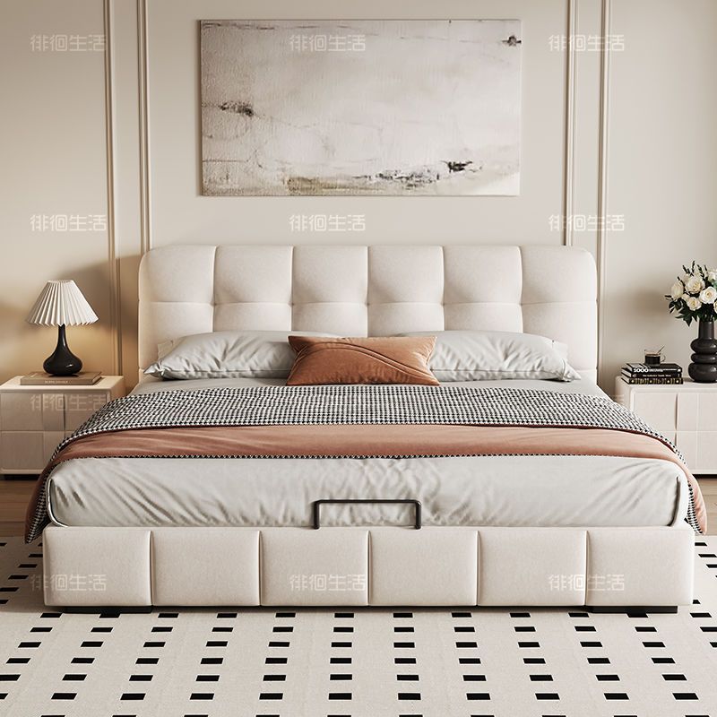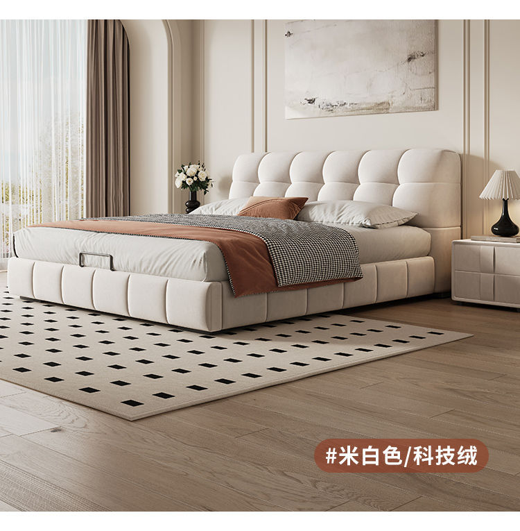 현대적인 미니멀리스트 퍼프 침대 크림 스타일 작은 아파트 패브릭 소프트 팩 더블 침대 현대적인 미니멀리스트 더블 수납 대형 침대스토어 가기