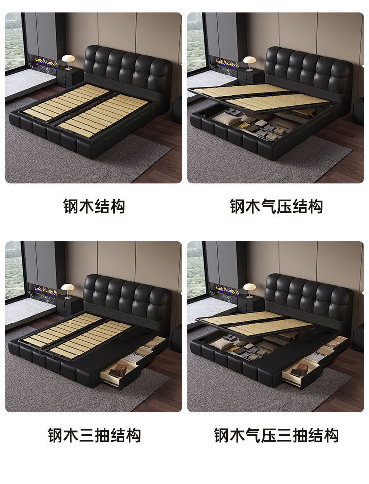 • 가죽 침대 + 7성 캐시미어 독립 스프링 매트리스 + 캐비닛 2개
