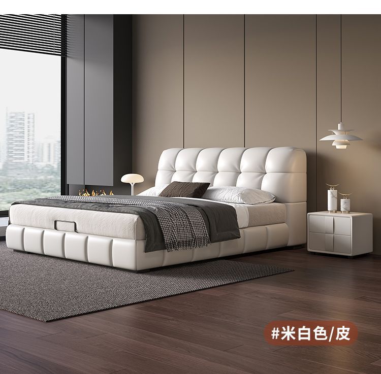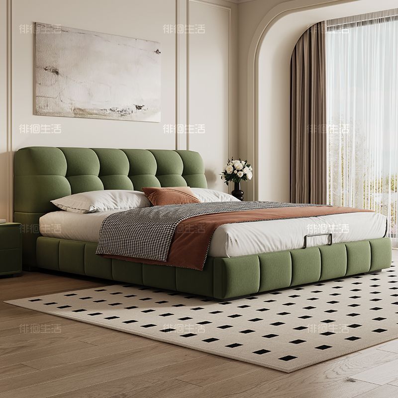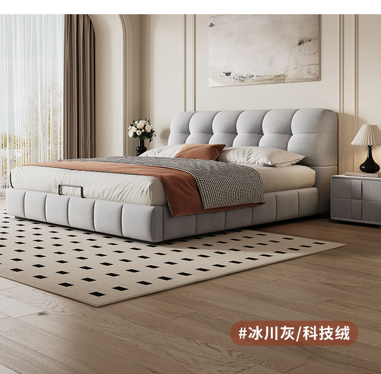 현대적인 미니멀리스트 퍼프 침대 크림 스타일 작은 아파트 패브릭 소프트 팩 더블 침대 현대적인 미니멀리스트 더블 수납 대형 침대