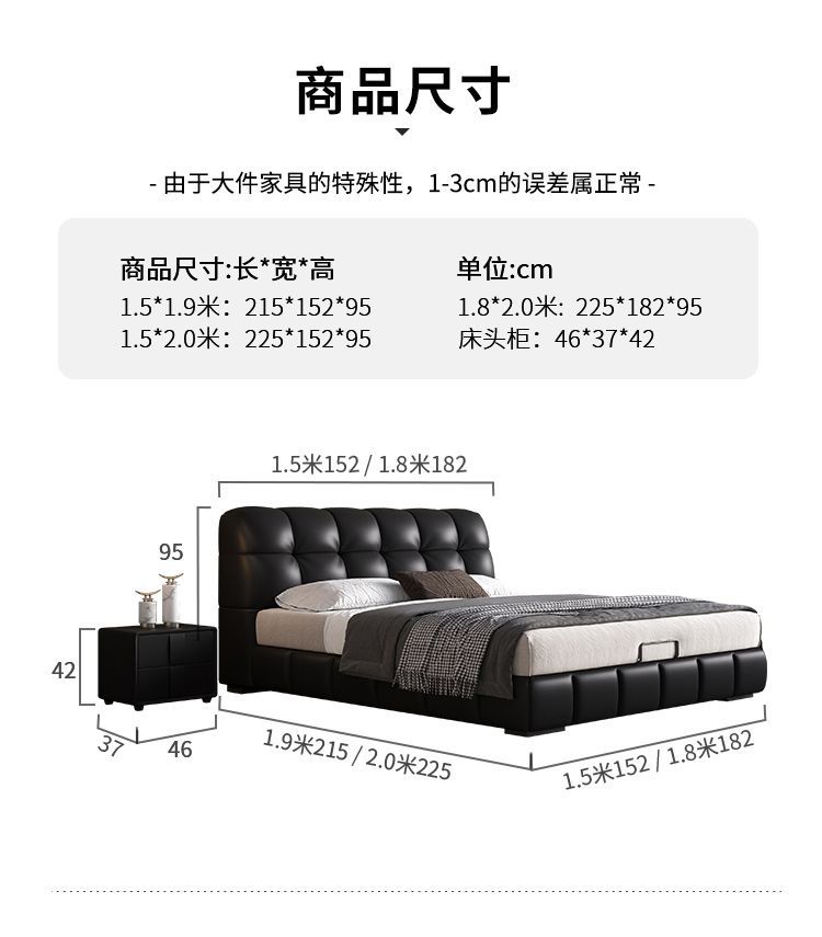 • 가죽 침대 + 피부 친화적인 통기성 니트 매트리스 + 침대 옆 테이블 2개
