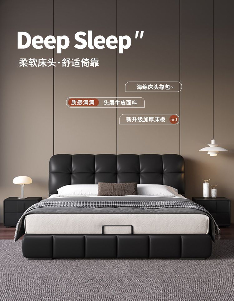 • 가죽 침대 + 딥 슬립 스완 독립 스프링 매트리스 + 캐비닛 2개