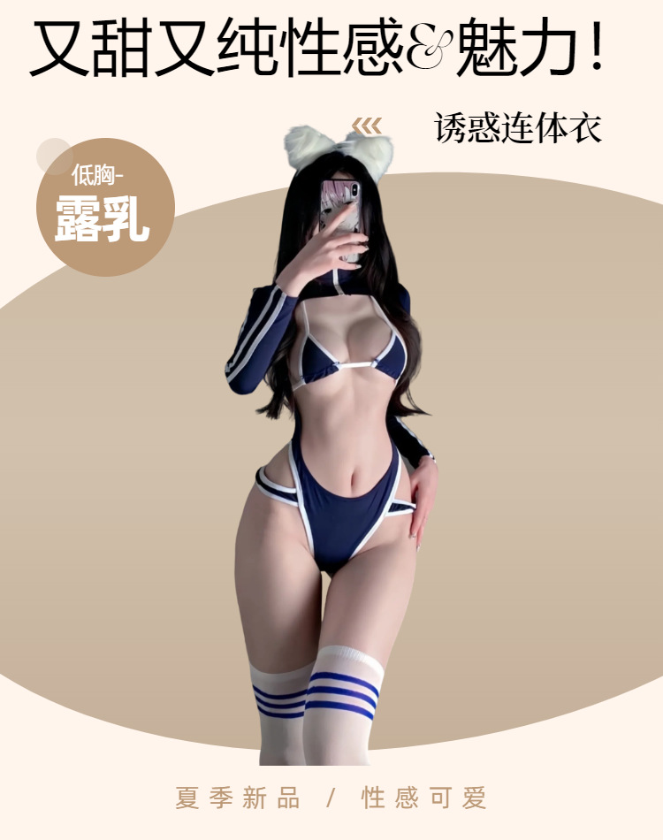 달콤한 일본식 죽은 물 수영복 섹시한 속옷 유니폼 유혹 열정 탈착 불가 가랑이 핫 긴팔 점프 슈트