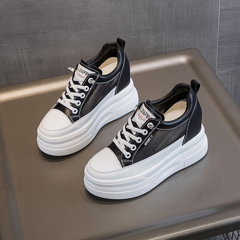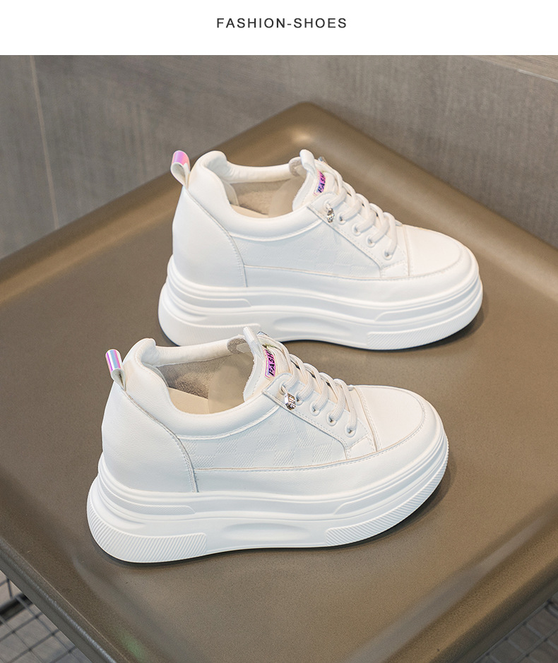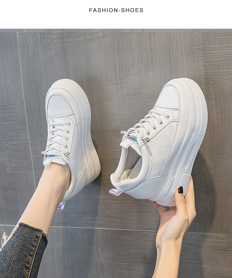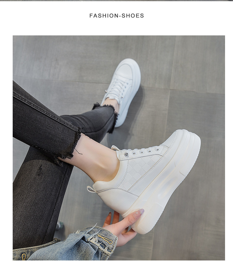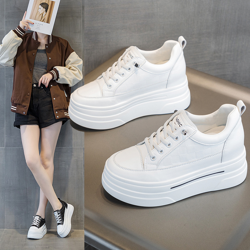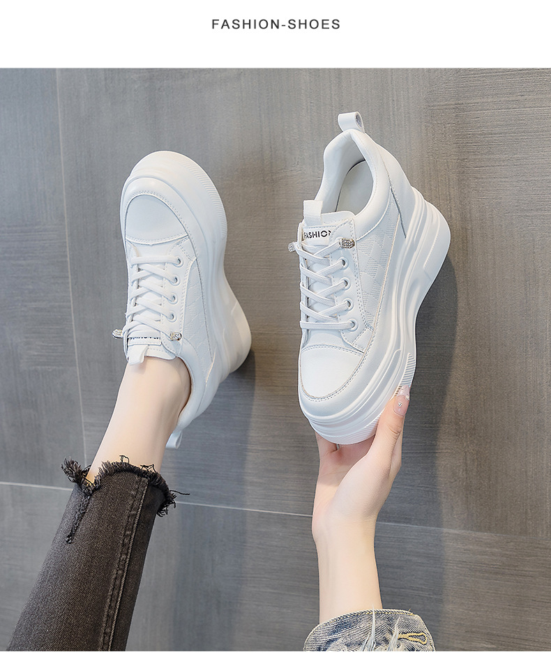 2025년 신형 여성용 두꺼운 밑창 캐주얼 운동화, 로우탑 레이스업 한국식 트렌디 팝콘 여성용 흰색 신발스토어 가기