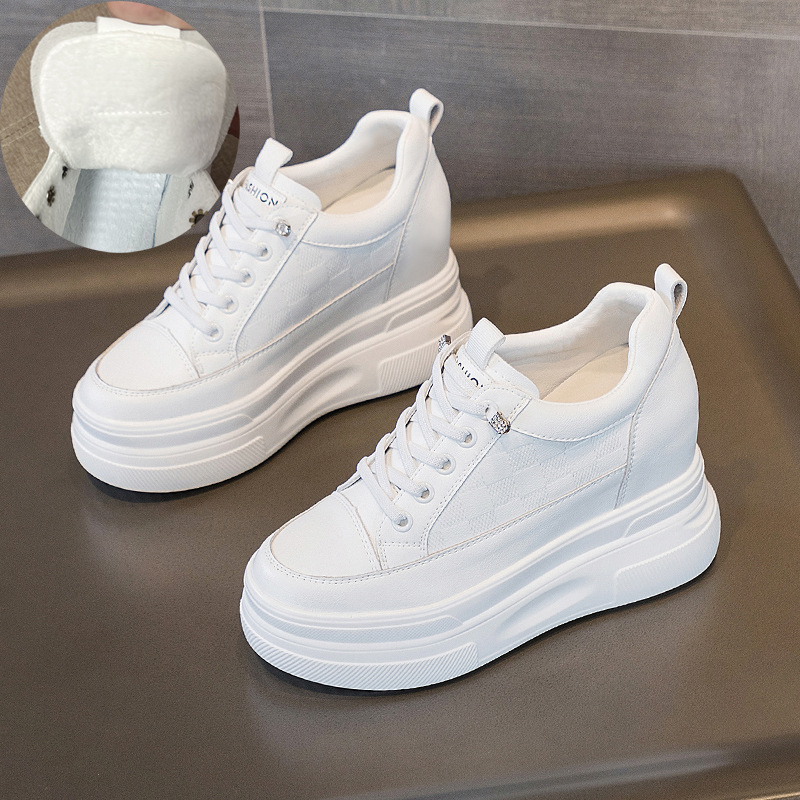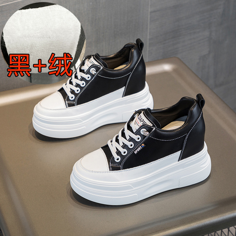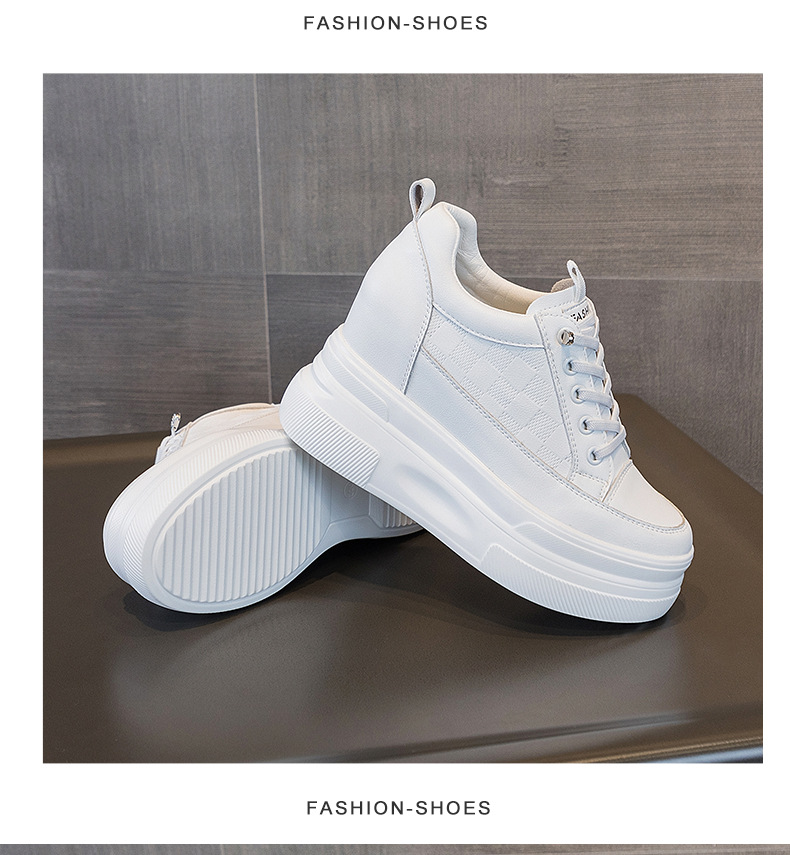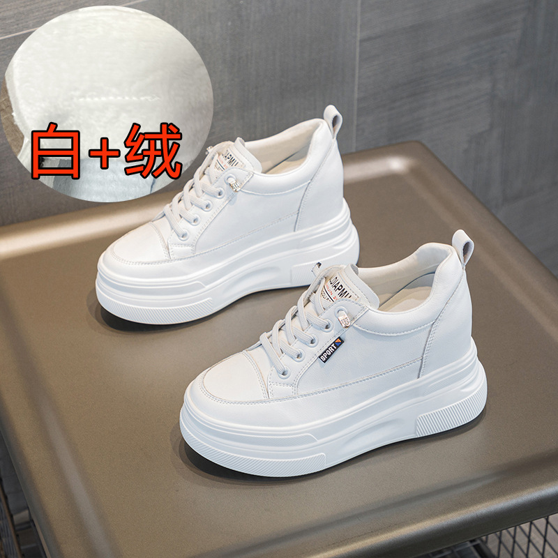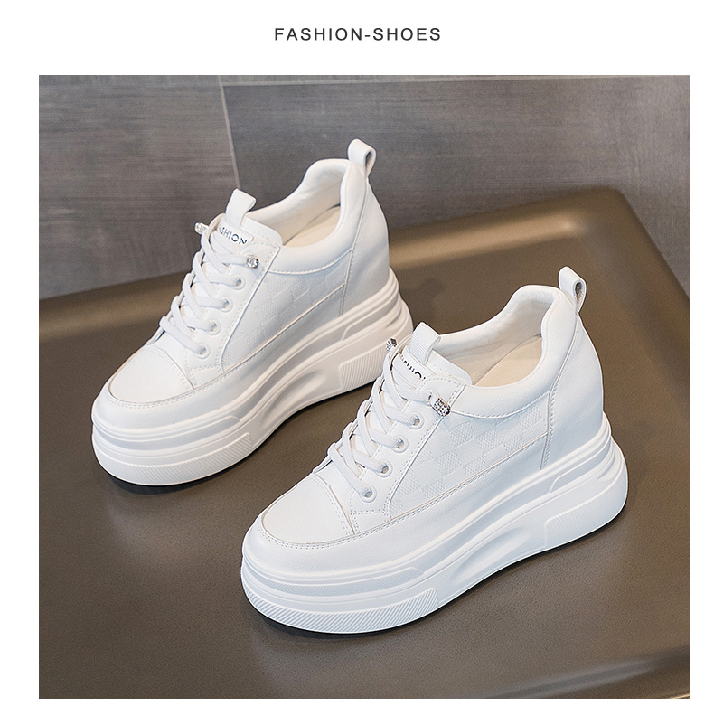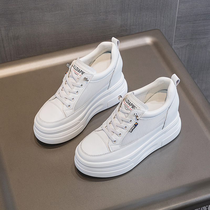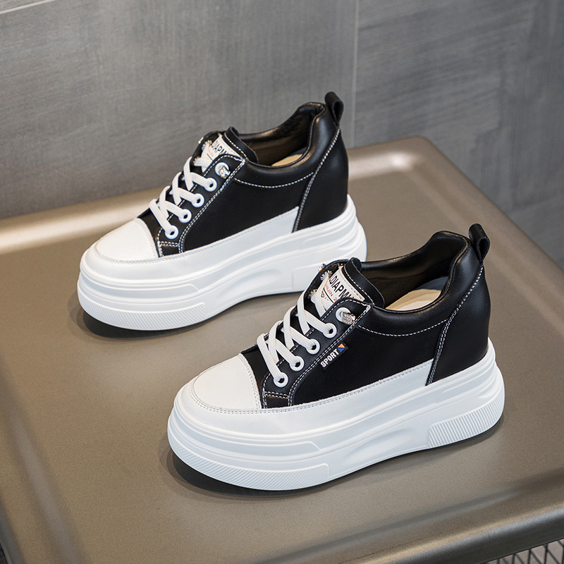 2025년 신형 여성용 두꺼운 밑창 캐주얼 운동화, 로우탑 레이스업 한국식 트렌디 팝콘 여성용 흰색 신발스토어 가기