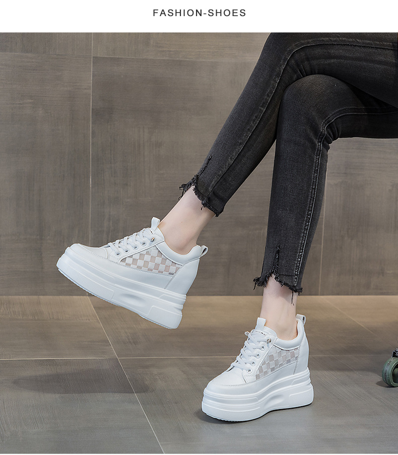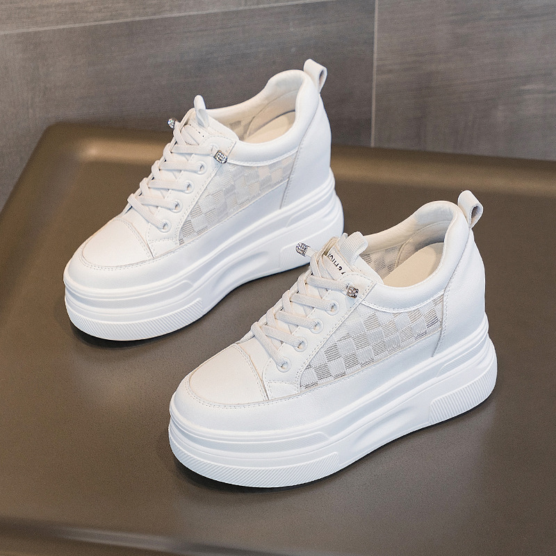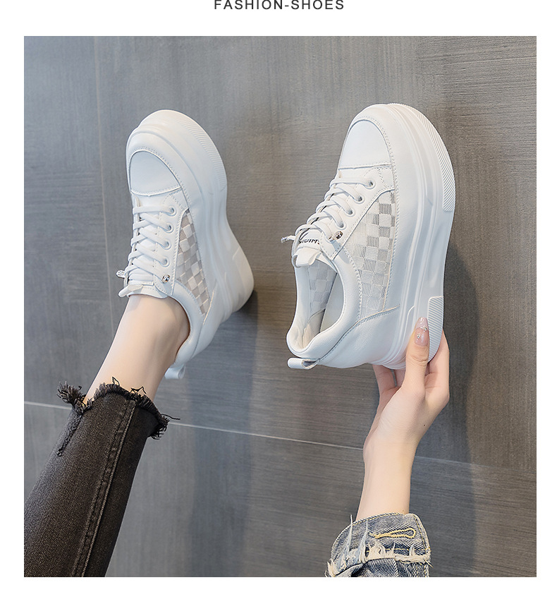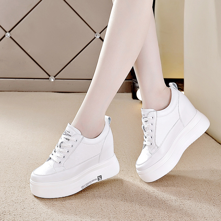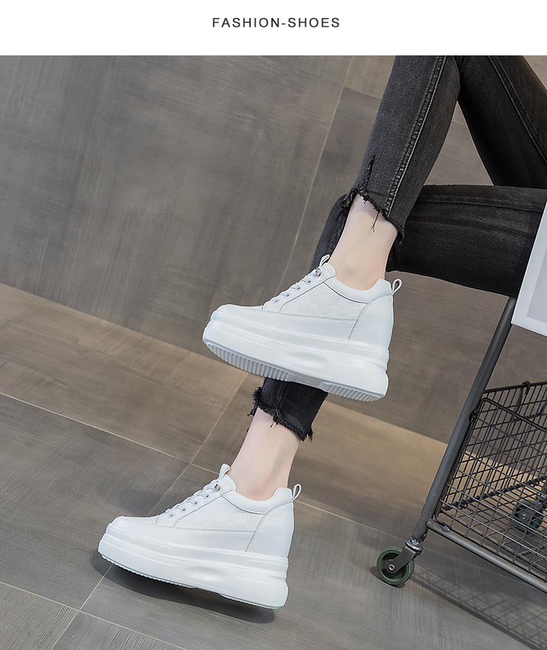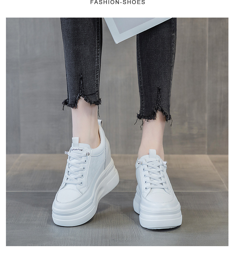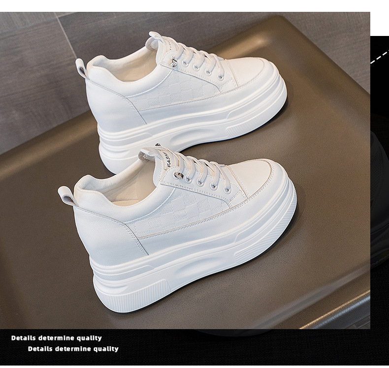 2025년 신형 여성용 두꺼운 밑창 캐주얼 운동화, 로우탑 레이스업 한국식 트렌디 팝콘 여성용 흰색 신발스토어 가기