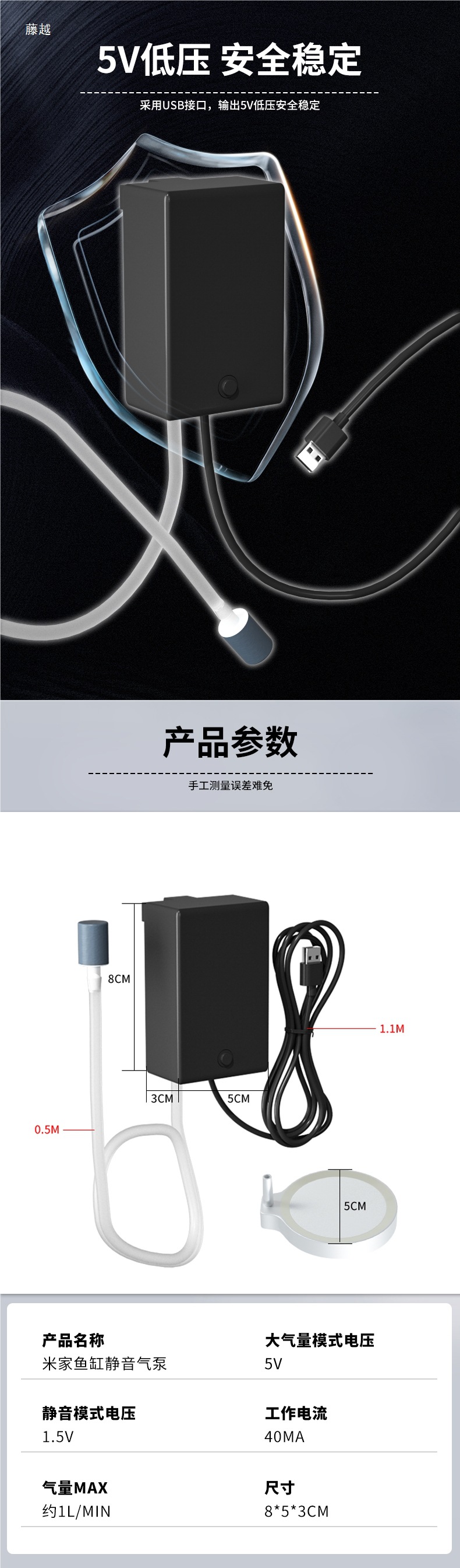 • [Mijia에 적용 가능] 버블 스톤 + 에어 플레이트가 포함된 USB 공기 펌프