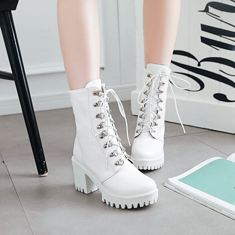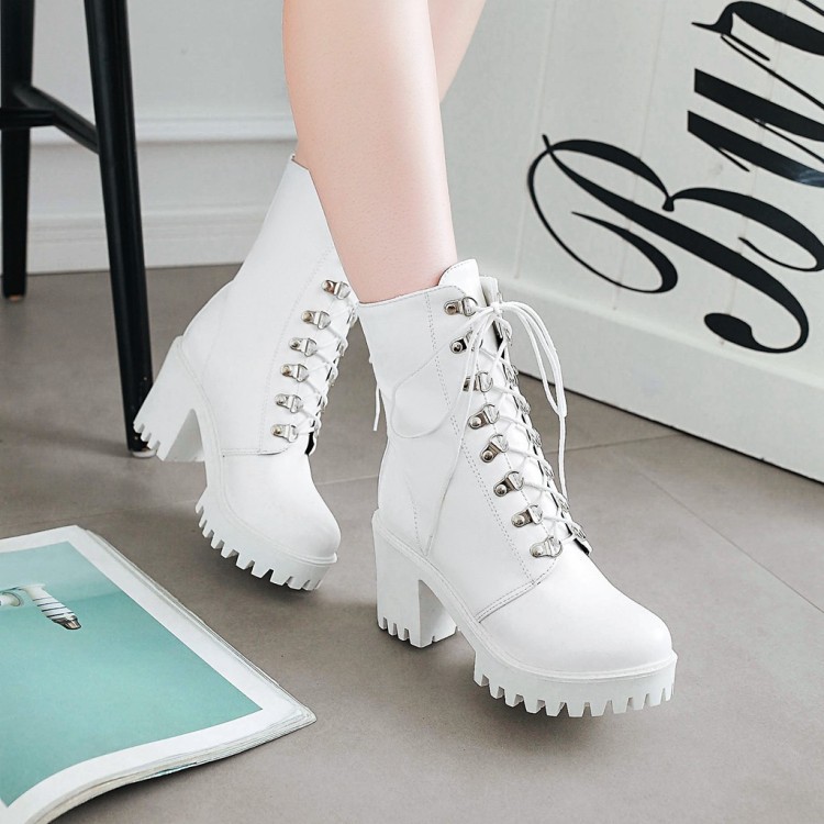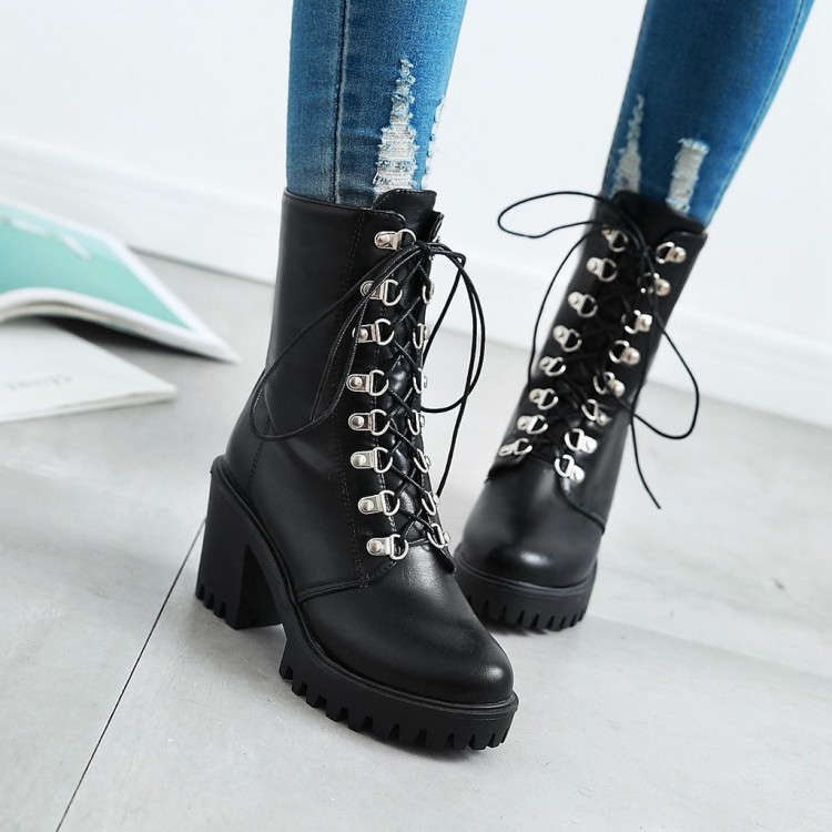 23 가을, 겨울 새로운 마틴 부츠 여성 대형 두꺼운 굽 라운드 발가락 방수 플랫폼 짧은 부츠 솔리드 컬러 가죽 부츠 도매 6732