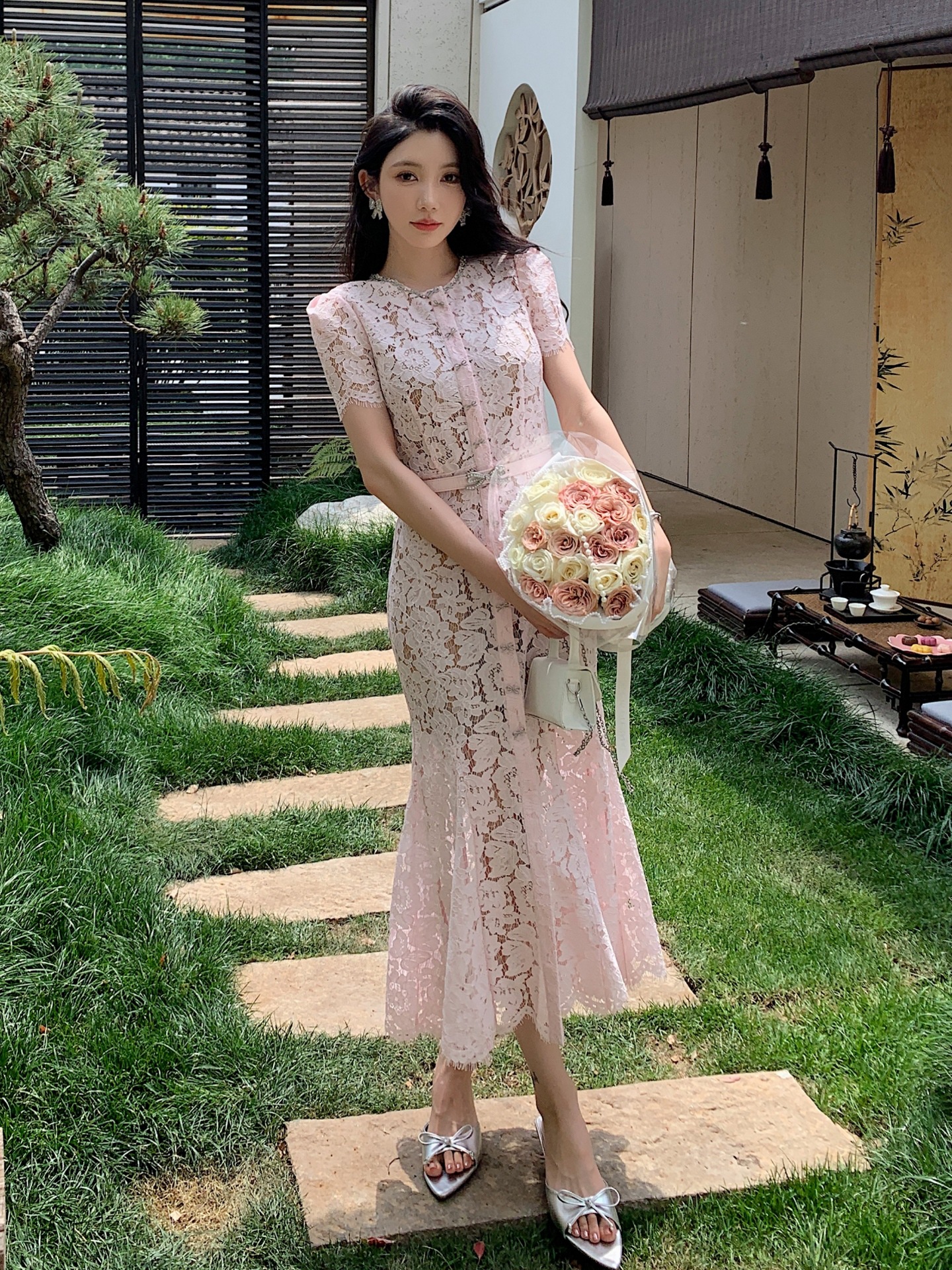 【面料质地】睫毛蕾丝 门襟暗扣有吊带里布(送腰带哦)