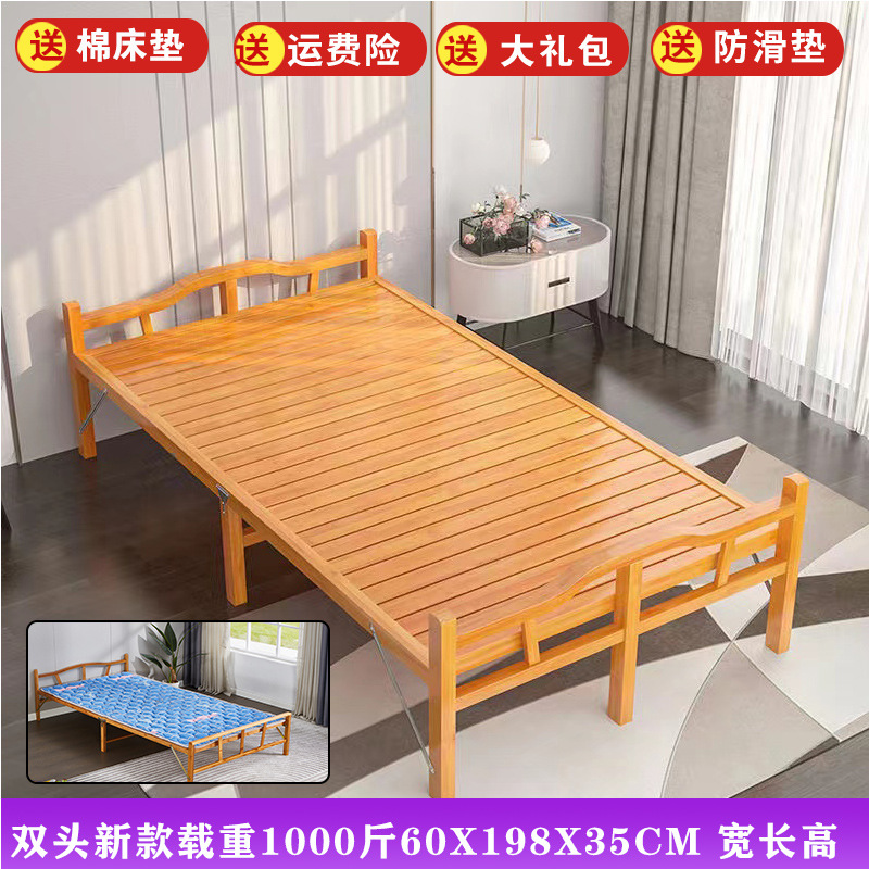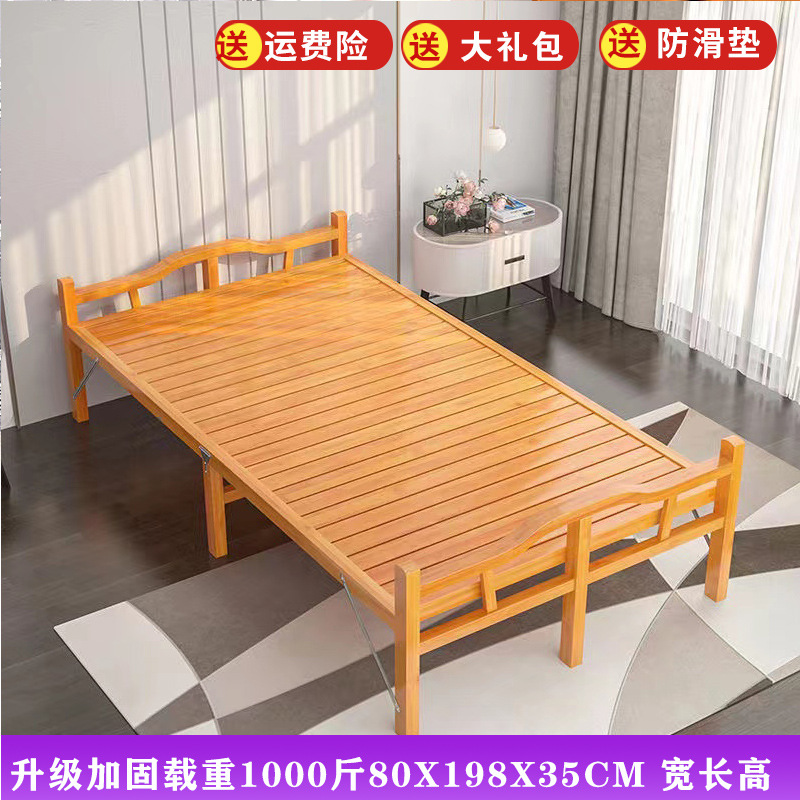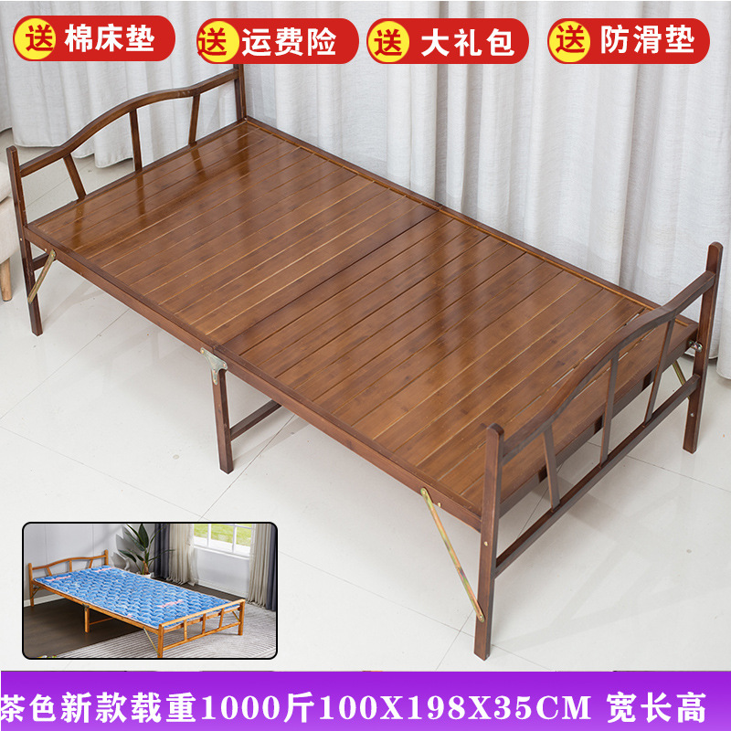 대나무 침대 접이식 싱글 침대 가정용 1.2m 강화 간이 침대 더블 경제적 소형 아파트 동반자 단단한 나무 침대스토어 가기