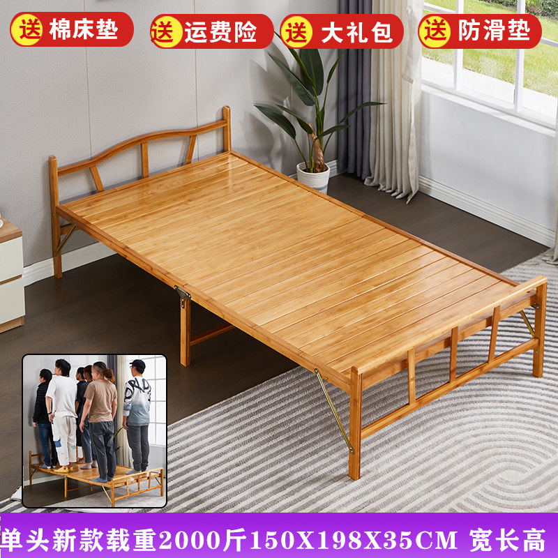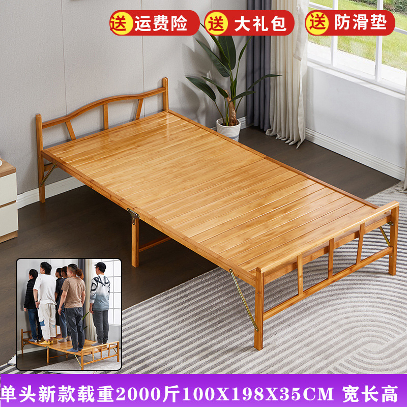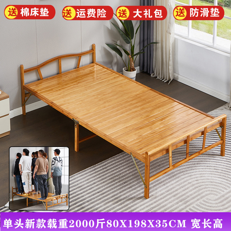 대나무 침대 접이식 싱글 침대 가정용 1.2m 강화 간이 침대 더블 경제적 소형 아파트 동반자 단단한 나무 침대