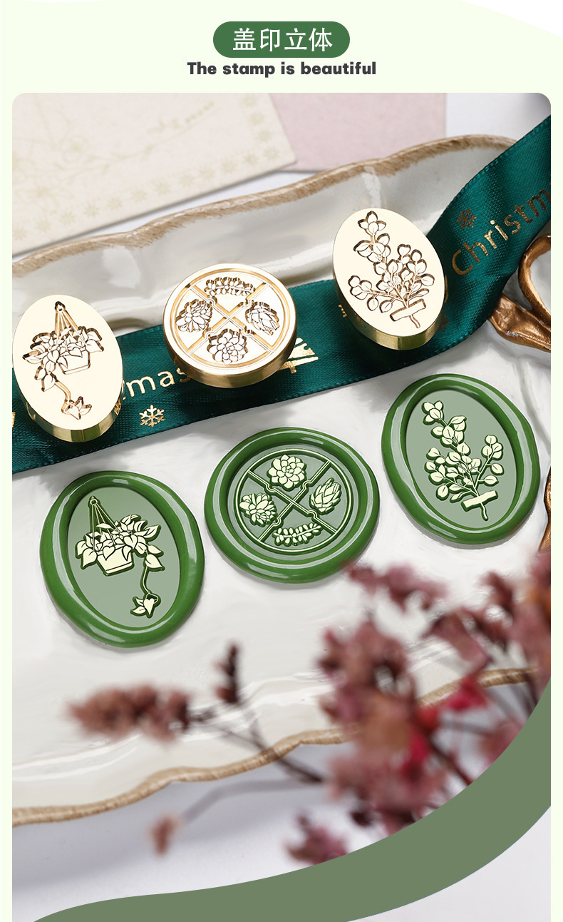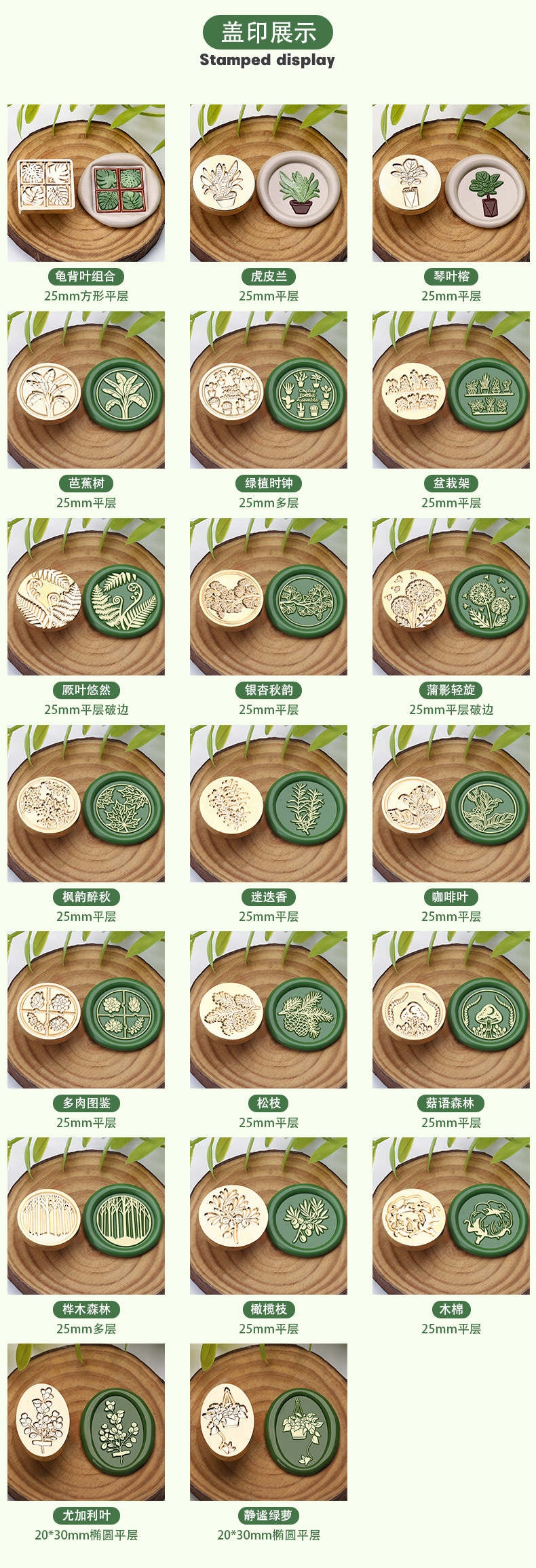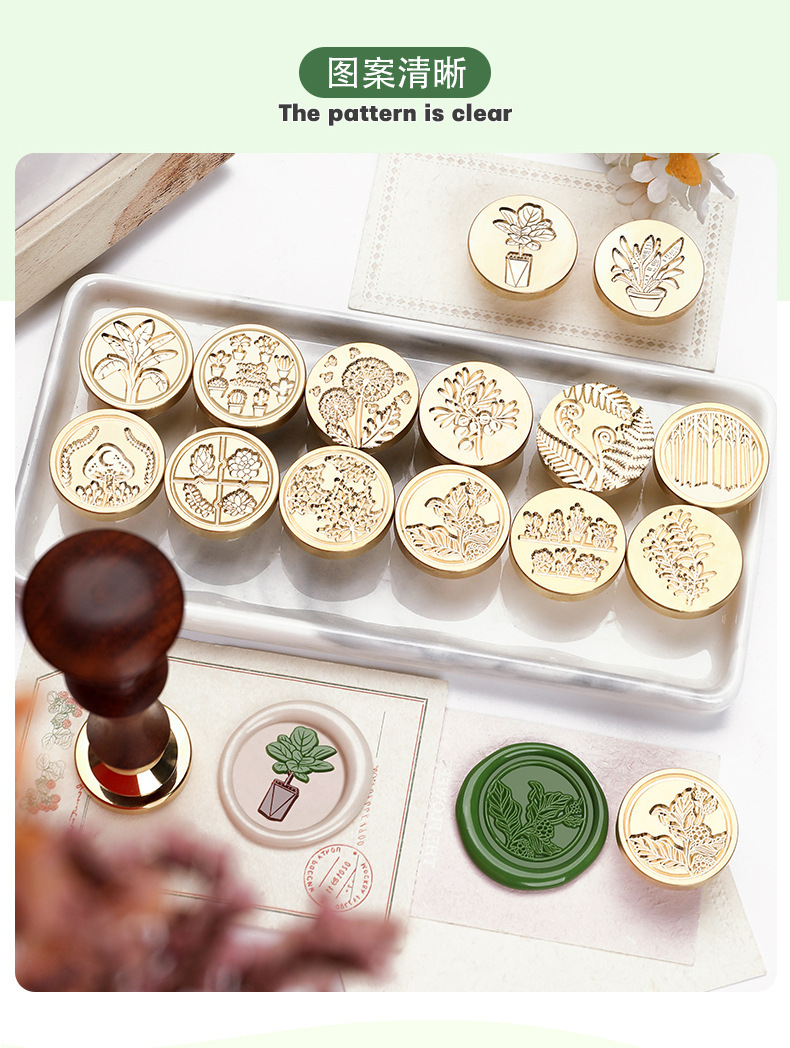 새로운 녹색 식물 시리즈 화재 페인트 스탬프 헤드 황동 스탬프 새겨진 식물 잎 핸드북 구리 헤드 도매