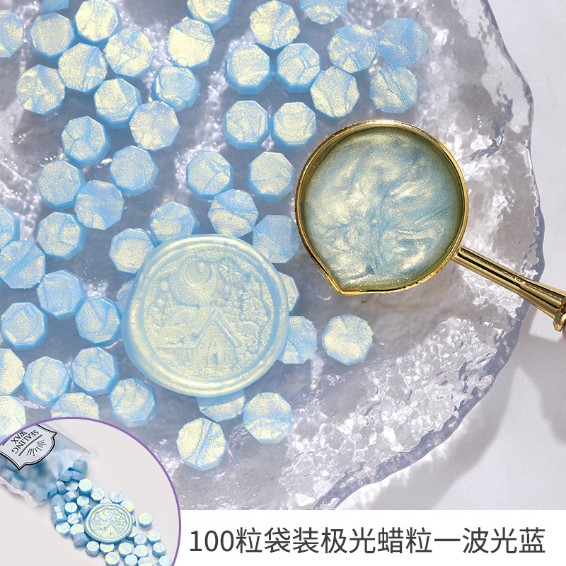 • 밝은 파란색의 파도가 있는 팔각형 오로라 왁스 입자 500g