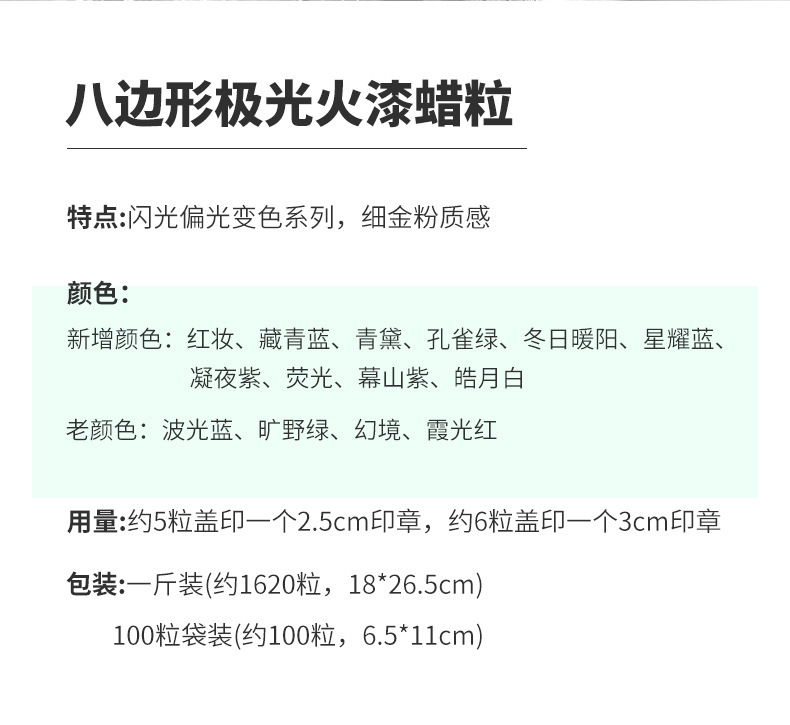 오로라 팔각형 새로운 색상 화염 페인트 왁스 입자 반짝이 편광 된 다채로운 화염 페인트 씰 씰링 왁스 제조 업체 도매스토어 가기