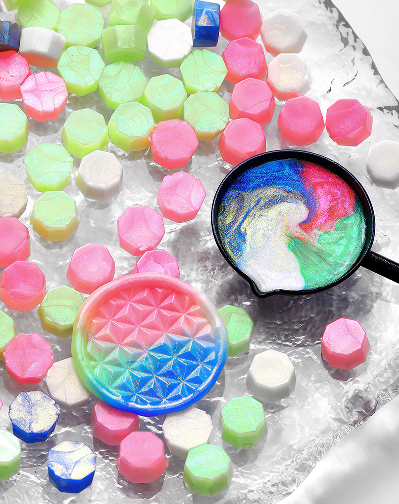 • 팔각형 오로라 왁스 입자 1개와 4가지 색상 혼합 (작은 봉지에 100개입)