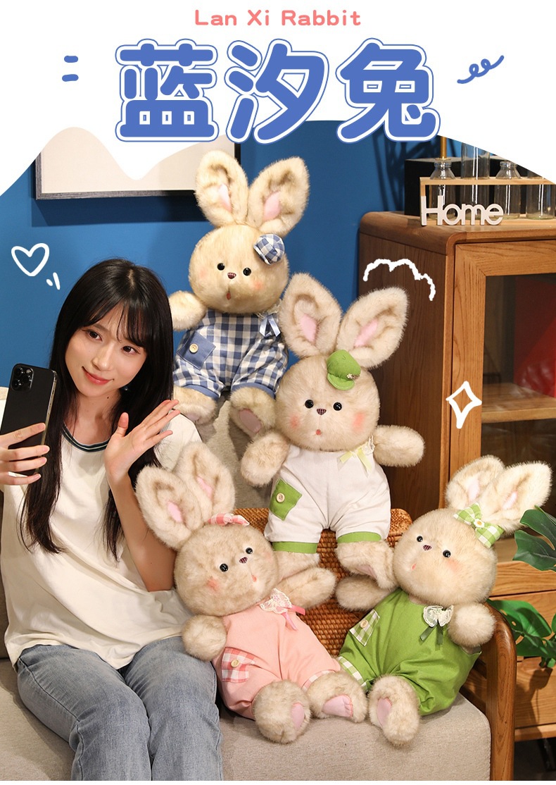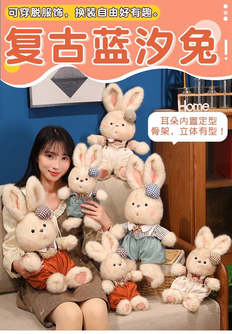귀여운 레트로 블루 토끼와 곰 커플 인형, 봉제완구, 어린이를 위한 친구, 생일 선물스토어 가기
