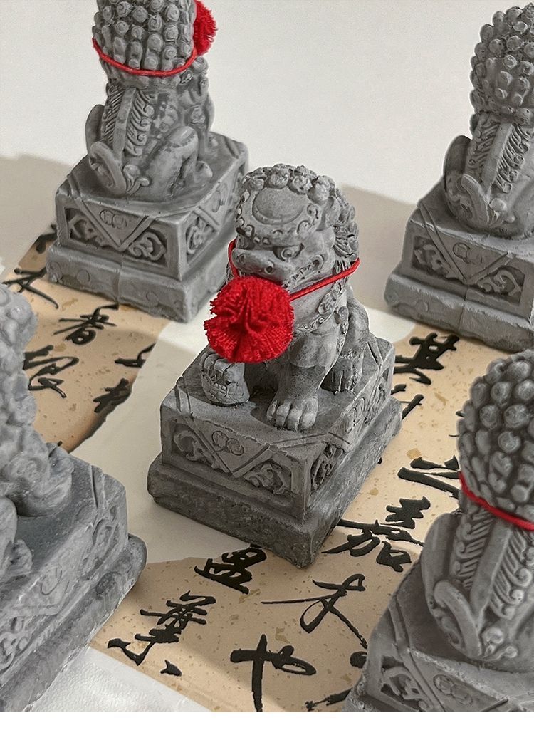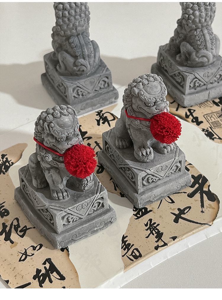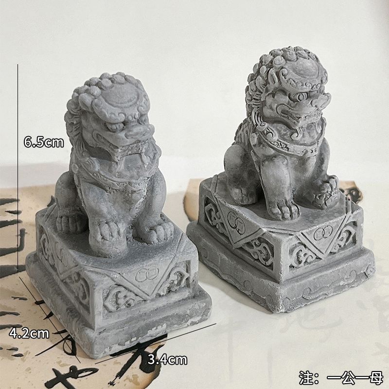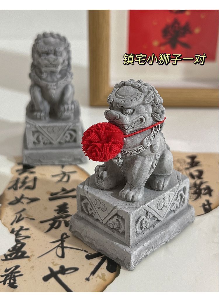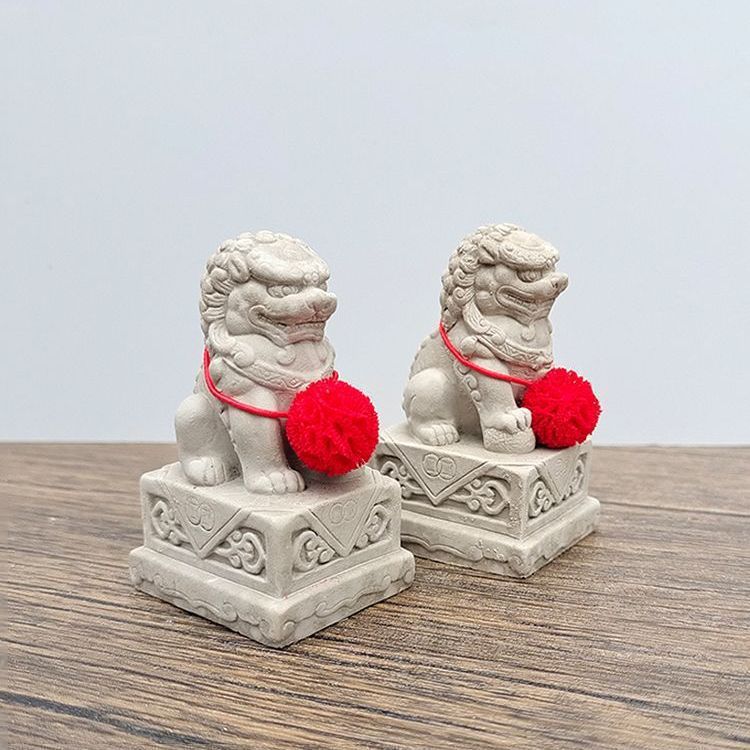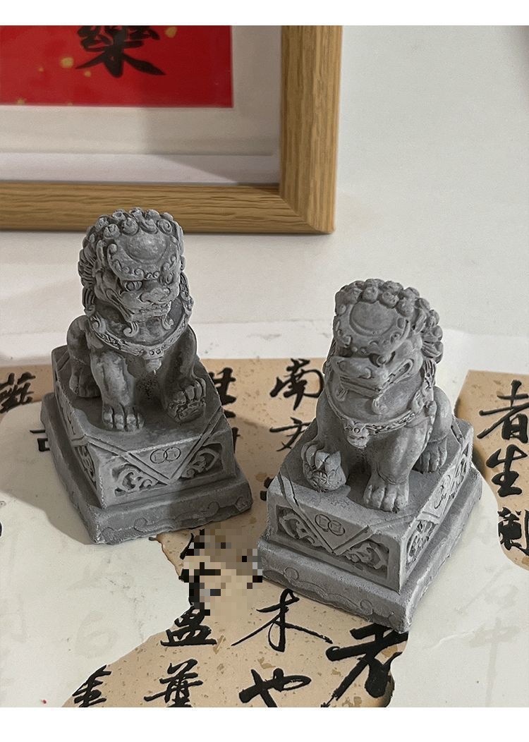 돌사자 작은 장식품, 집 문을 지키는 돌 조각품 한 쌍, 미니 행복한 사자 차 애완 동물 물고기 탱크 조경 데스크탑 장식 선물스토어 가기