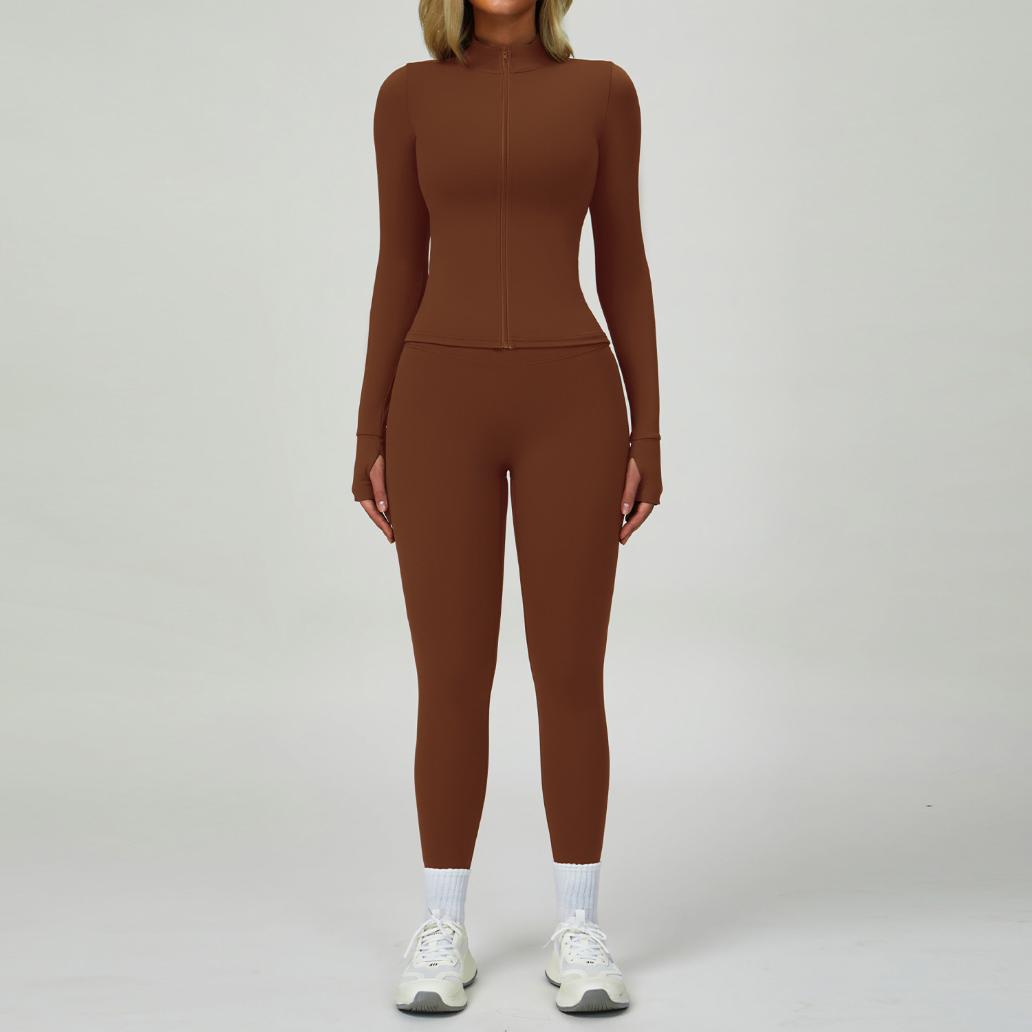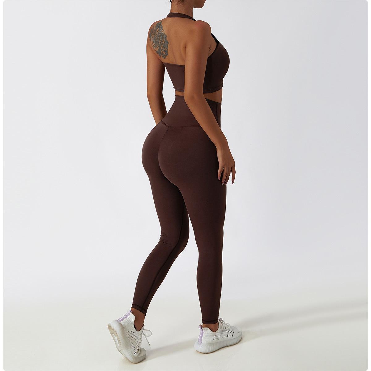가을 겨울 여성용 크로스보더 누드 요가복 지퍼 긴팔 피트니스웨어 세트 슬림 런닝 피트니스 운동복 6116
