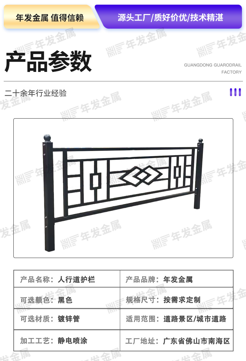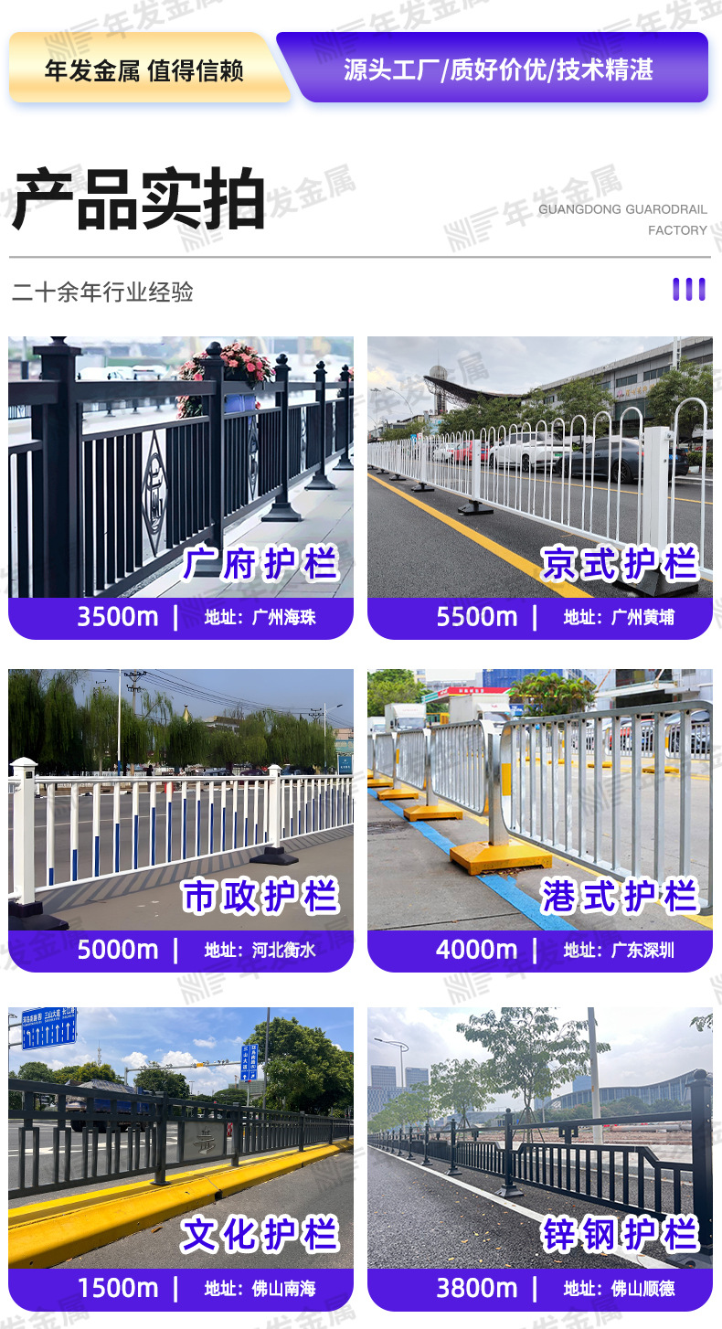 Foshan 공장 맞춤형 도시 계획 보행자 도로 안전 가드 레일 아연 도금 강철 도로 격리 도시 가드 레일