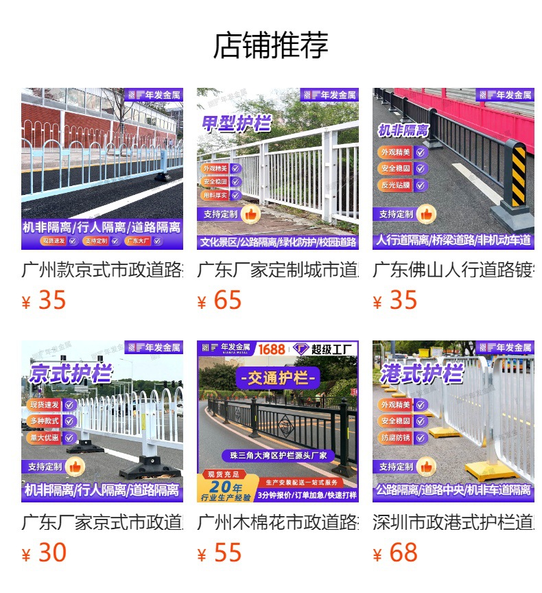 Foshan 공장 맞춤형 도시 계획 보행자 도로 안전 가드 레일 아연 도금 강철 도로 격리 도시 가드 레일스토어 가기