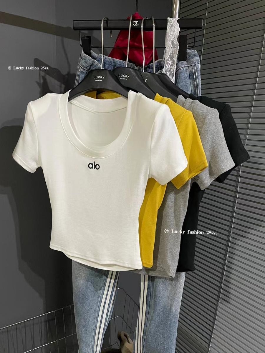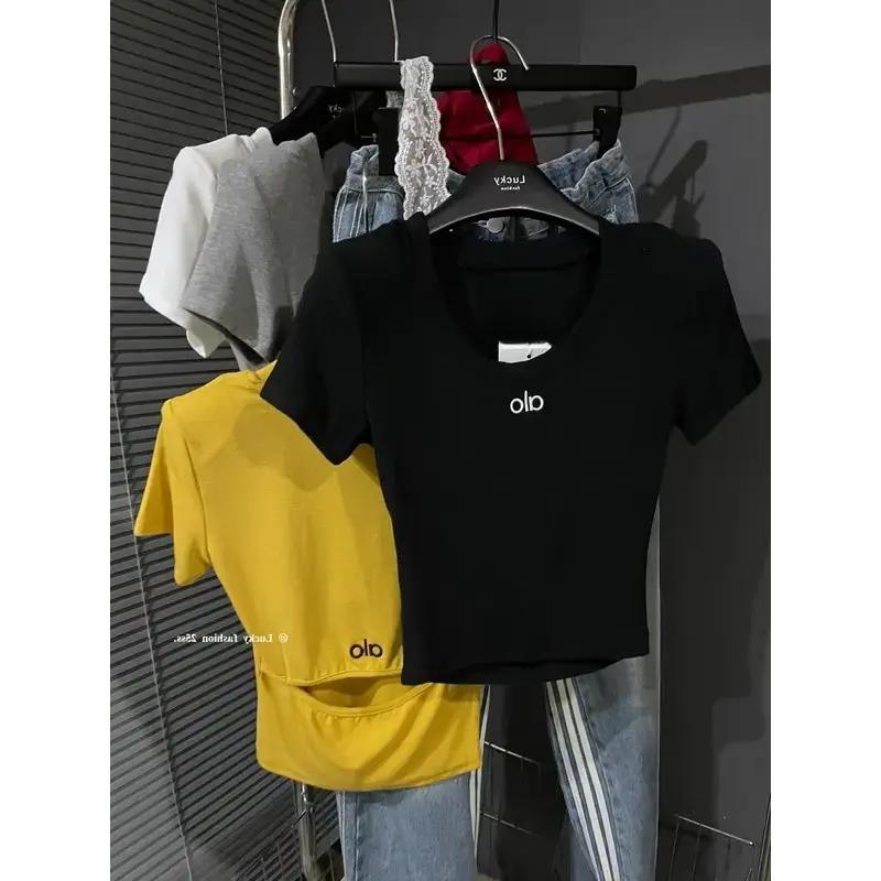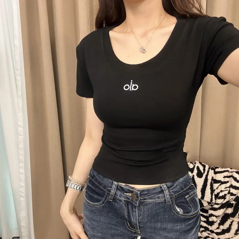 2025 여름 한국 패션 다재다능한 라운드 넥 레터 프린트 반팔 백리스 티셔츠 여성 슬림핏 탑 트렌디스토어 가기