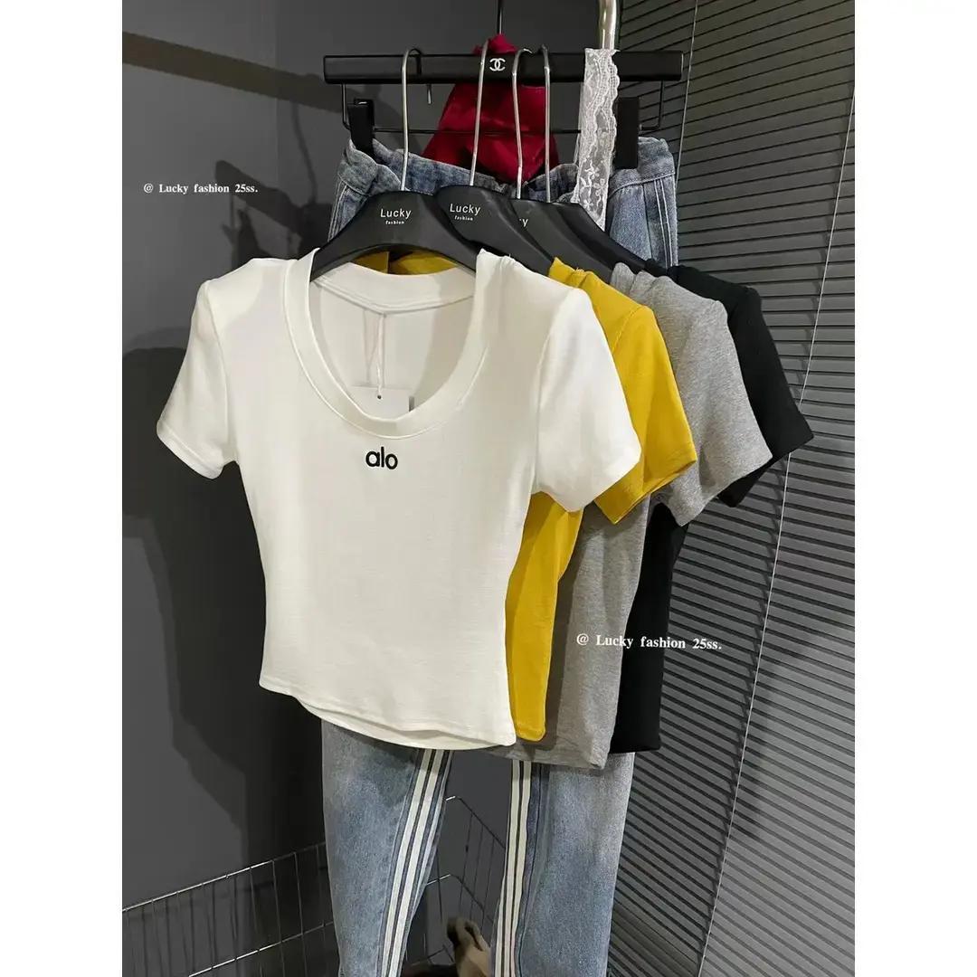 2025 여름 한국 패션 다재다능한 라운드 넥 레터 프린트 반팔 백리스 티셔츠 여성 슬림핏 탑 트렌디