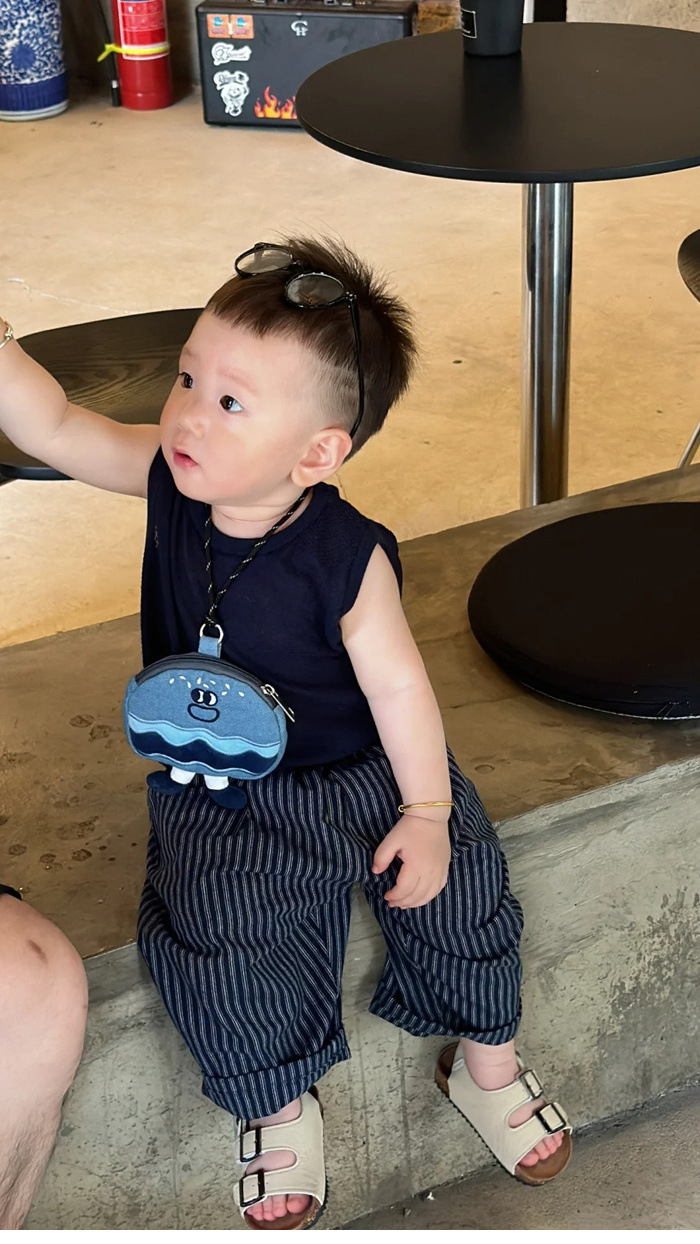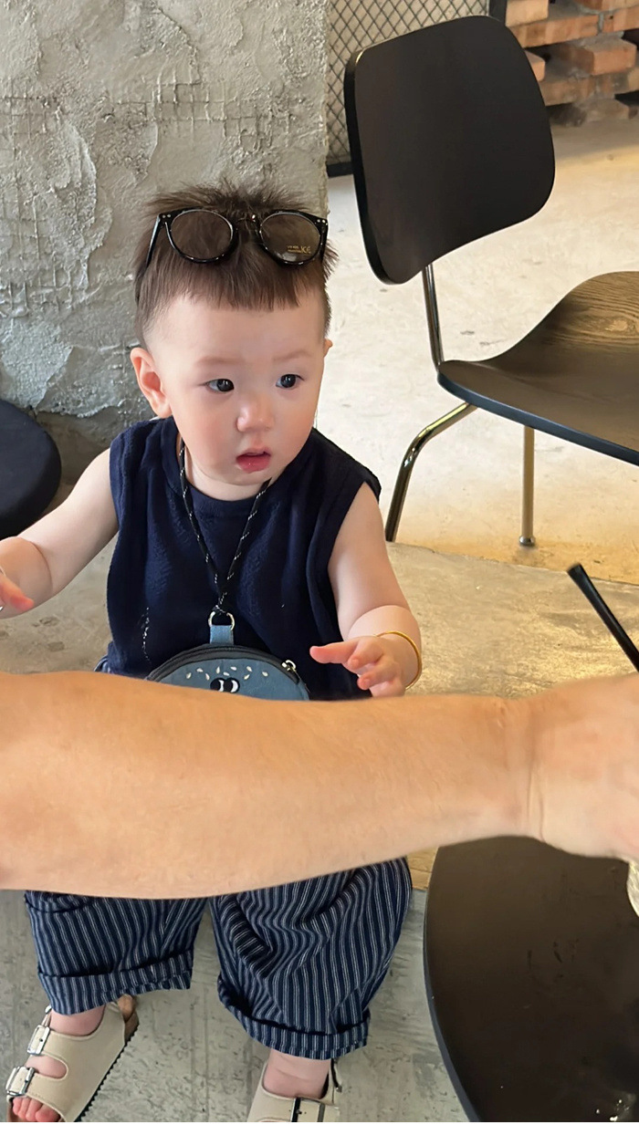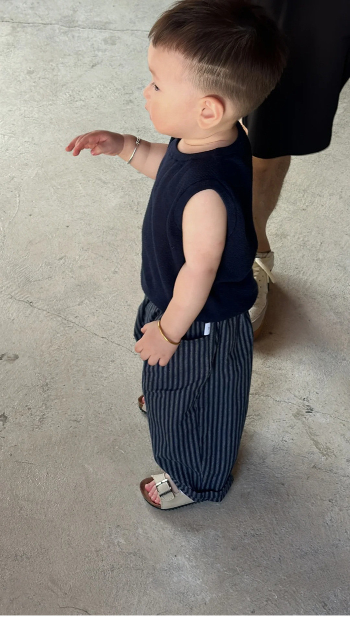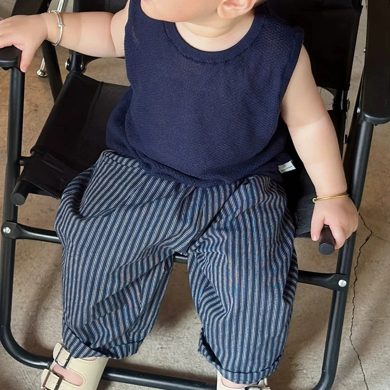 한국 아동복 소년 정장 여름 잘 생긴 아기 유행 얇은 아동 조끼 탑 스트라이프 캐주얼 바지 유행