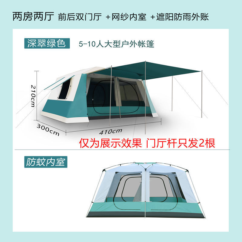 야외 캠핑을 위한 대형 텐트, 침실 2개, 거실 2개, 캠핑 저녁 식사, 밤에 여행, 모기 방지 및 비 방지 밤 텐트
