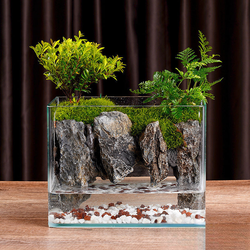 수륙양식 수조, 이끼 마이크로 조경 풀세트, 게으른 책상, 실제 녹색 식물, 마이크로 조경 생태 수조 완성품스토어 가기