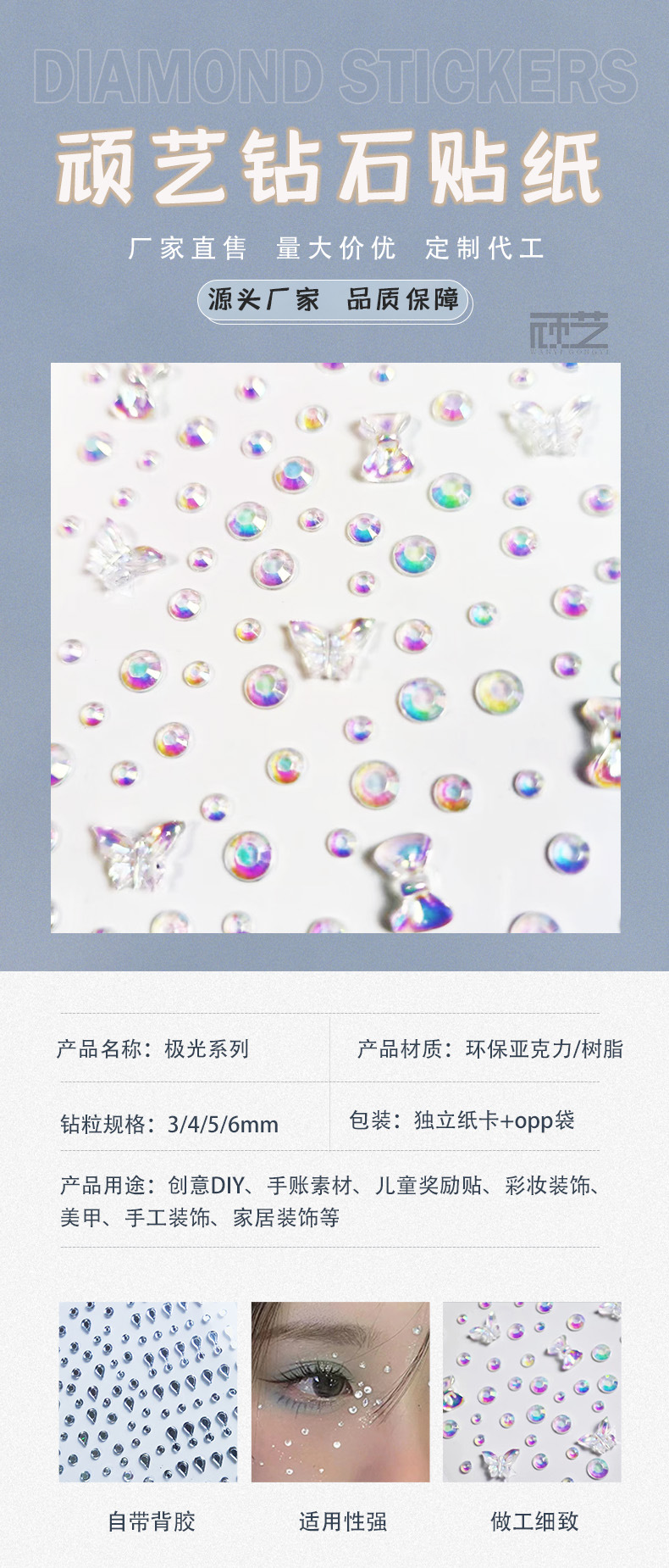 심포니 오로라 나비 보석 크리스탈 다이아몬드 스티커 소녀 드레스 반짝 이는 입체 얼굴 장식 컬러 아이 메이크업