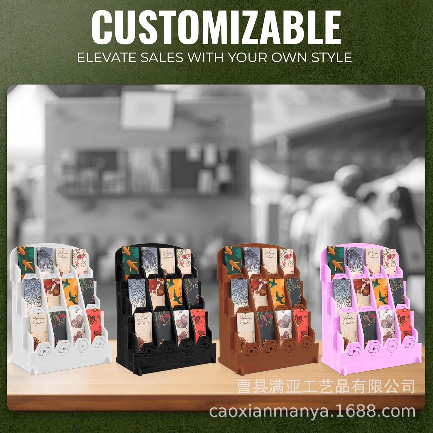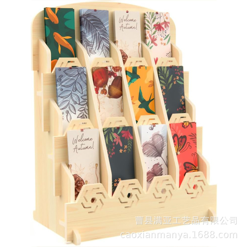 나무 카드 디스플레이 스탠드 공예 전시회 메모 보관 랙 학교 도서관 DIY 북마크 스토리지 홀더스토어 가기