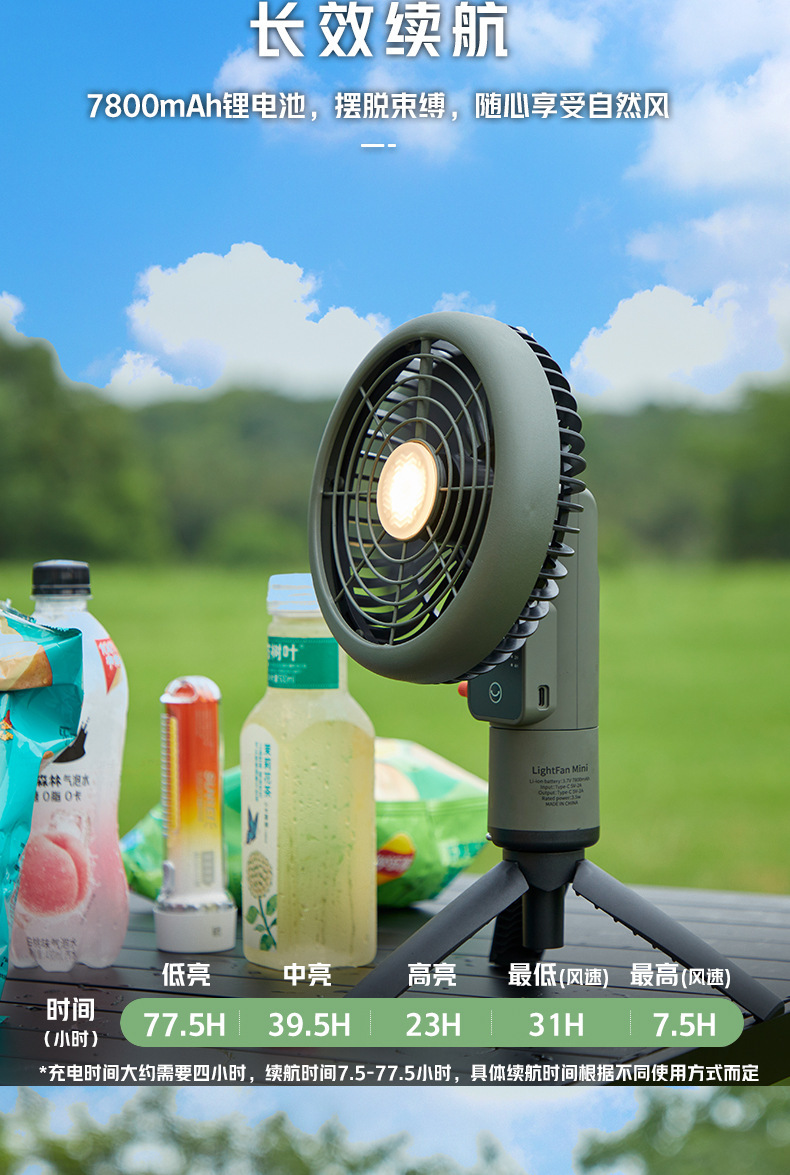 Sanlux 풍경 미니 팬 라이트 휴대용 대용량 충전식 텐트 라이트 캠프 조명