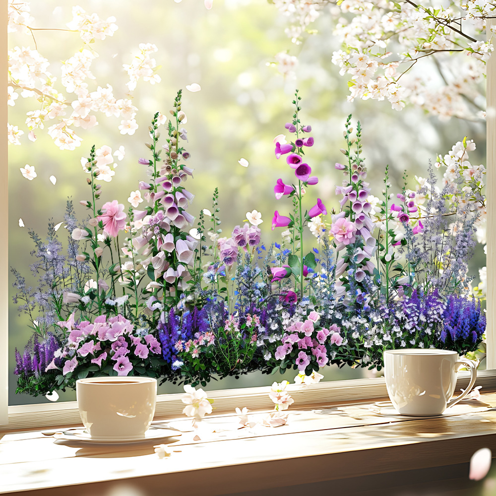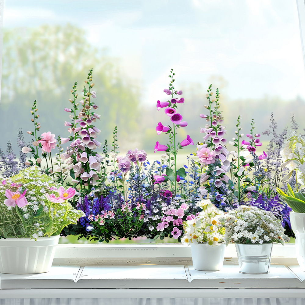 Aike JD3631 신선한 튤립 식물 스티커 유리 스티커 침실 발코니 유리 장식 정전기 스티커스토어 가기