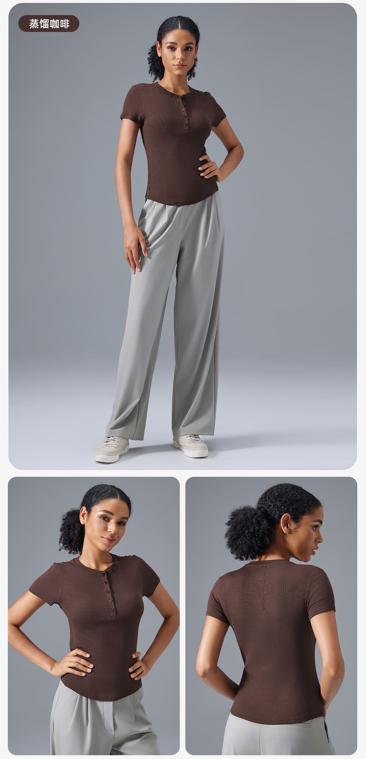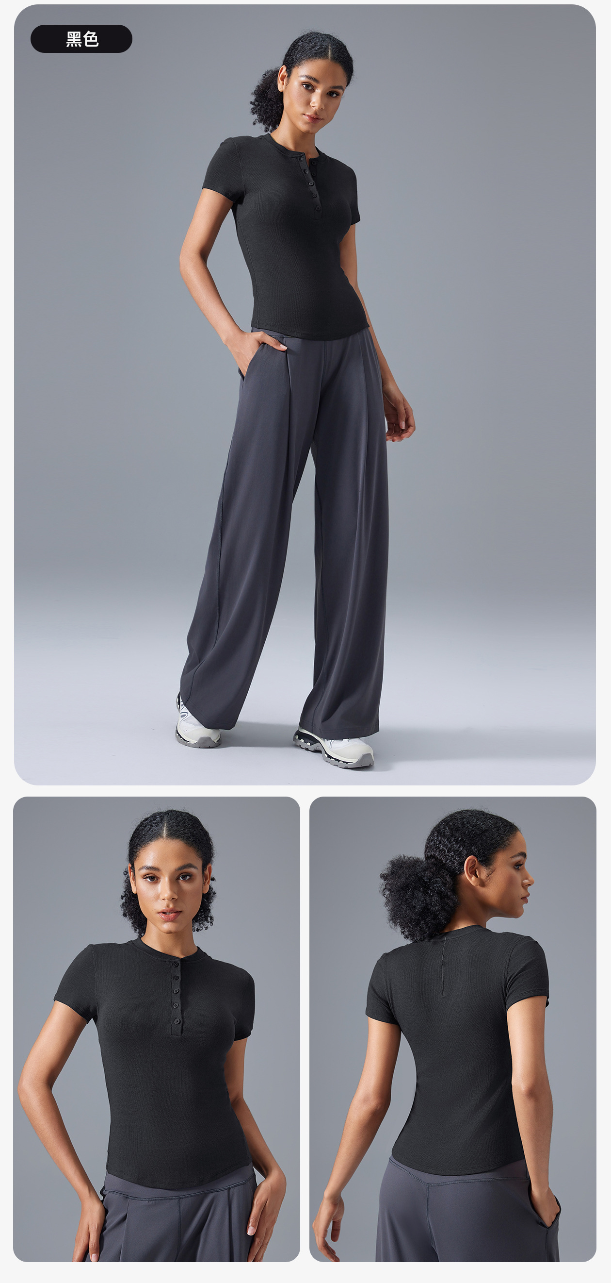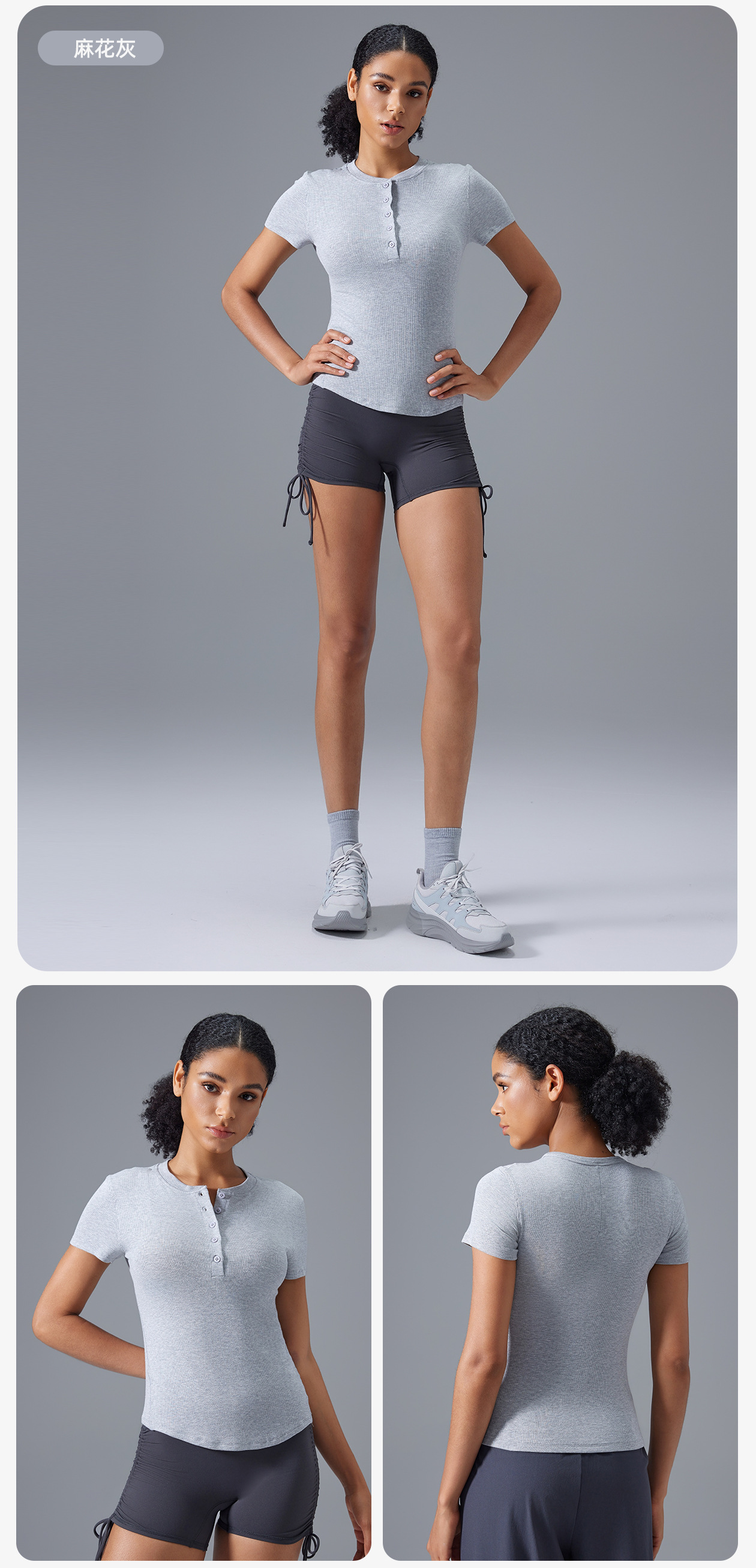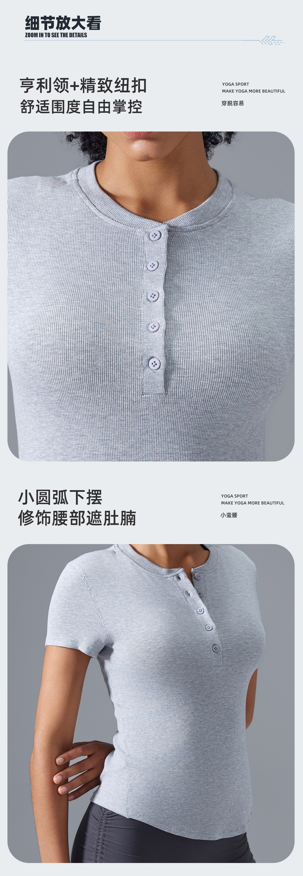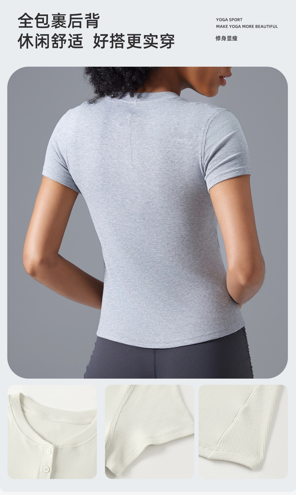 모달 반팔 여성용 버튼 다용도 피트니스 요가웨어 슬리밍 스포츠 베이스 레이어 여름 D25097스토어 가기