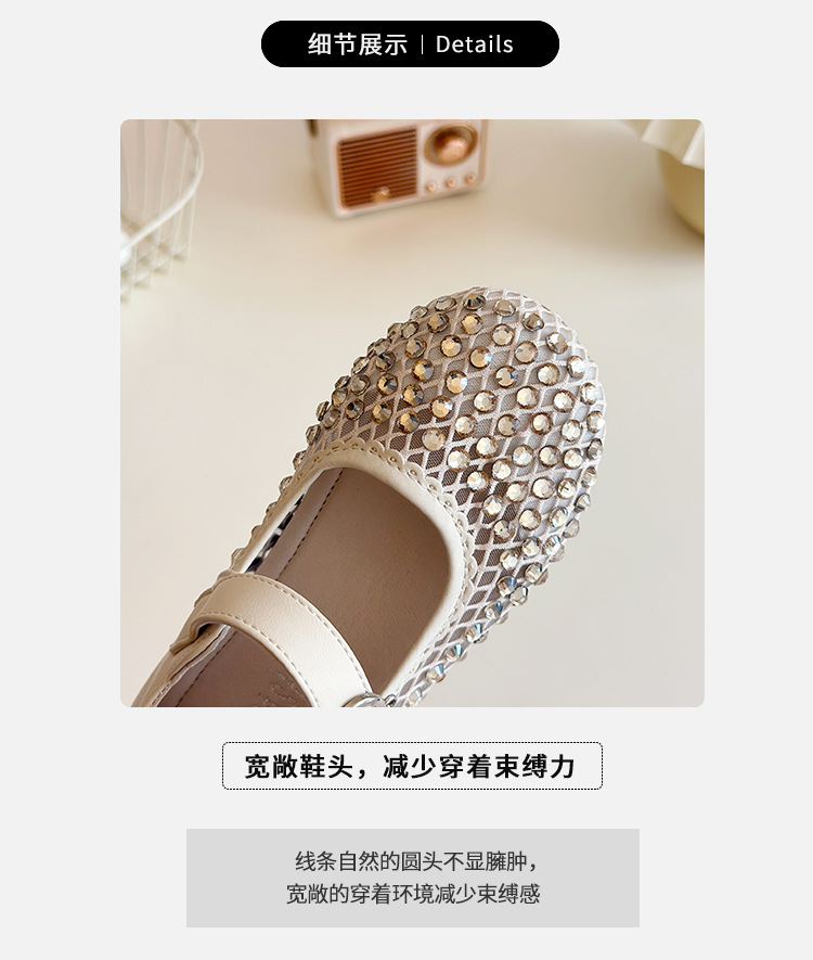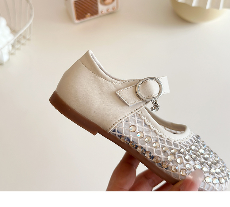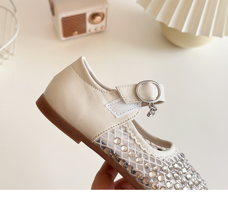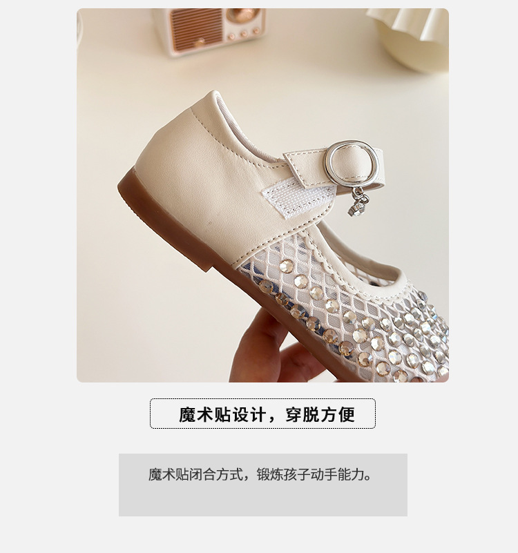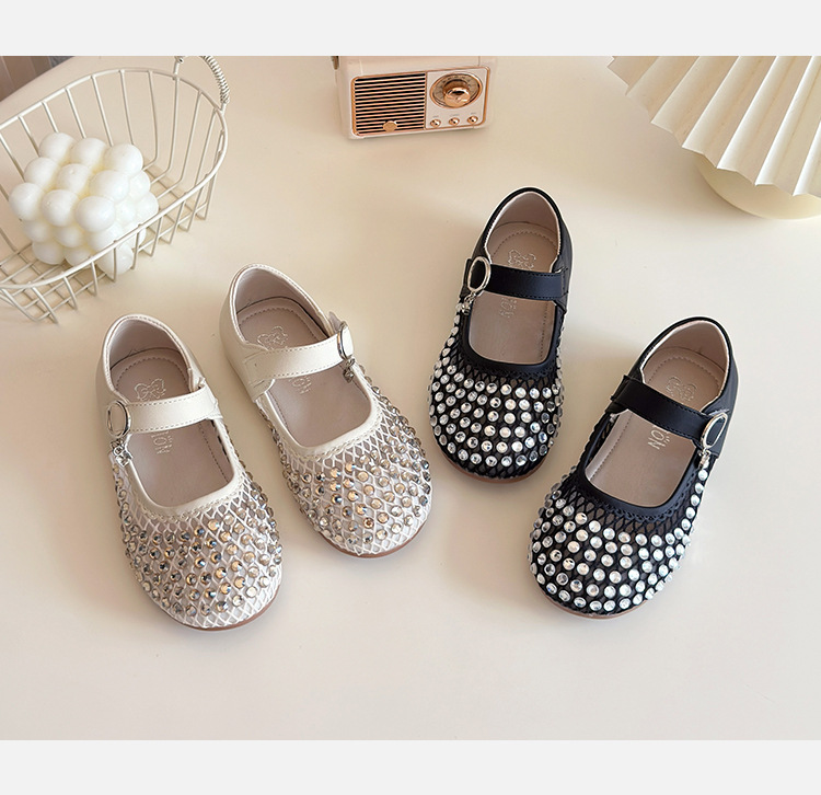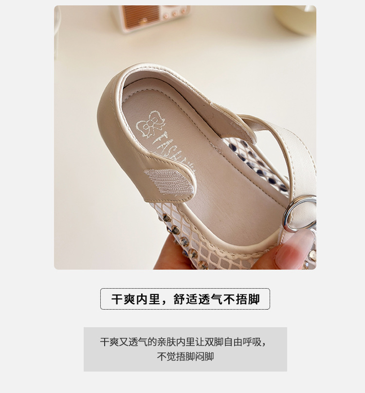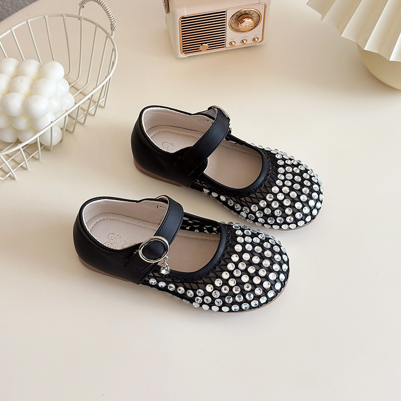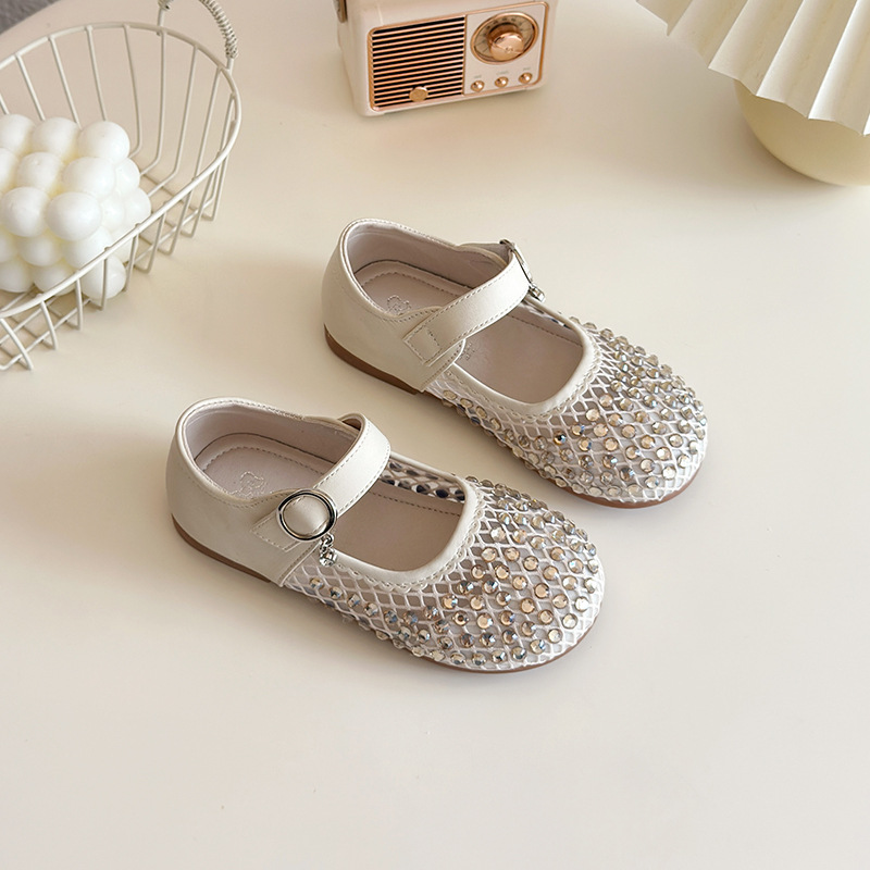여자 라인 석 샌들 2025 봄과 여름 새로운 스타일 어린 소녀 부드러운 밑창 공주 신발 한국어 버전 중공 메쉬 펌프 신발