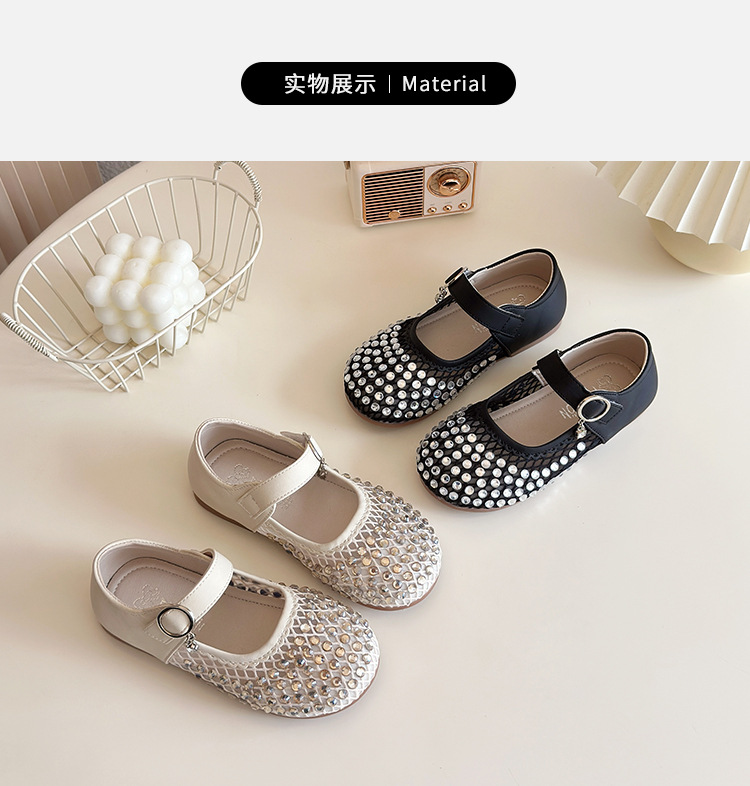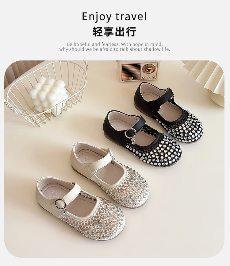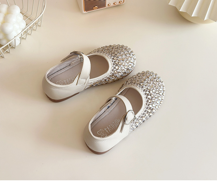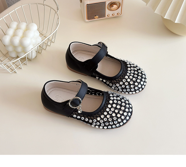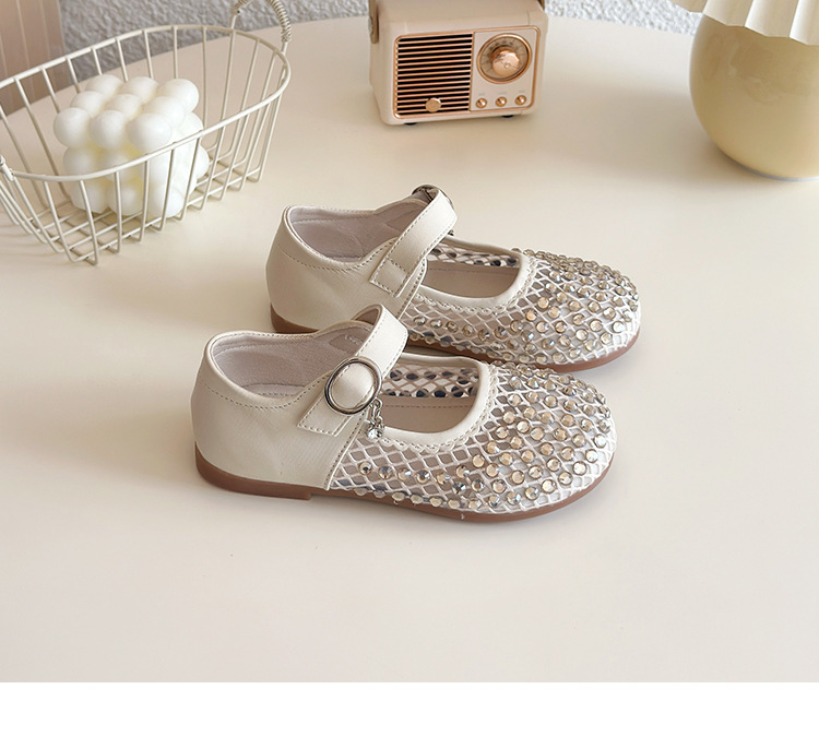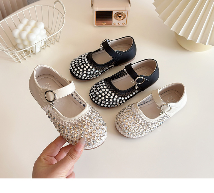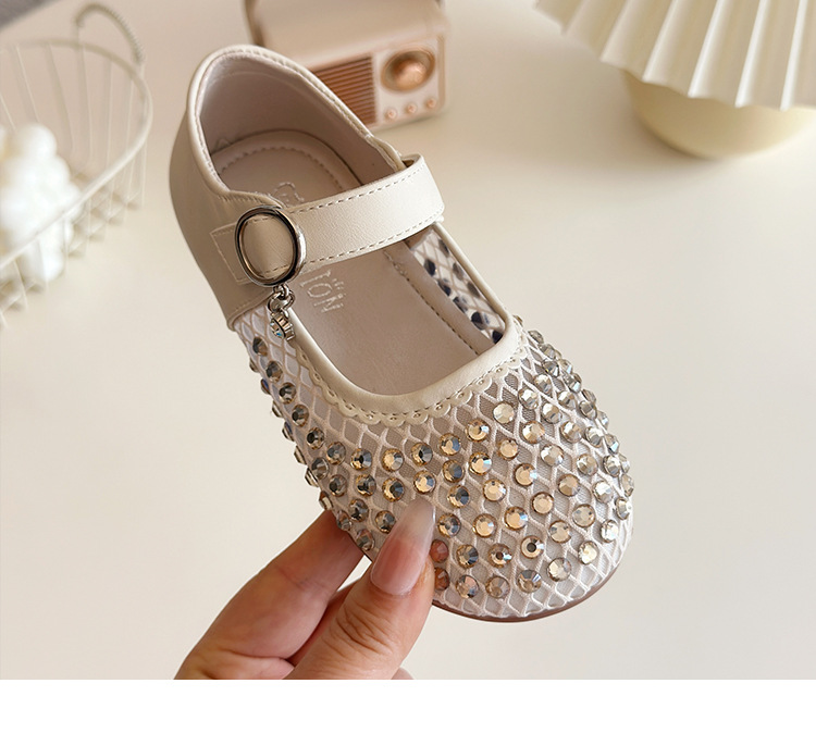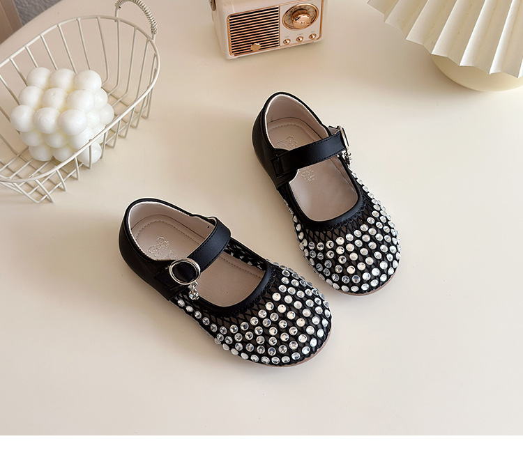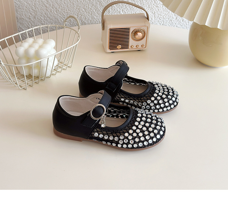 여자 라인 석 샌들 2025 봄과 여름 새로운 스타일 어린 소녀 부드러운 밑창 공주 신발 한국어 버전 중공 메쉬 펌프 신발